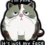 I’m Fine It’s Just My Face Cat Attitude Pin Brooch, Sass Cat Meme Enamel Pins, Hilarious Gifts For Sassy Girl Sarcastic Queen, Funny Sayings Brooches, Tongue-In-Cheek Lapel Badge, Sarcasm Accessories