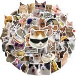 103PCS Funny Holographic Vinyl Cat Meme Stickers, Waterproof Cute