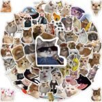 100 Pcs Funny Cat Stickers Cute Cat Meme Sticker for Adults Funny Animal Vinyl Waterproof Stickers for Water Bottles Laptops Phone Luggage Guitar