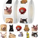 500 Pcs Cat Meme Stickers Roll Cute Meme Kitten Stickers for Water Bottles Laptop Guitar Suitcase, DIY Waterproof Vinyl Decals Gifts for Adults Teens Boys Girls