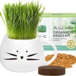 The Cat Ladies Organic Cat Grass for Indoor Cats – Growing Kit with Organic Seed Mix, Soil and White Cat Planter. Natural Hairball Control and Digestion Remedy, Cat Gifts