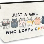 Cat Makeup Bag For Cat Lover Easter Gifts: Cosmetic Bag & Toiletry Pouch Just A Girl Who Love Cats Themd For Mom, Daughters, Friends,Teen Girl & Women.Ideal Gifts For Travel, Birthdays.