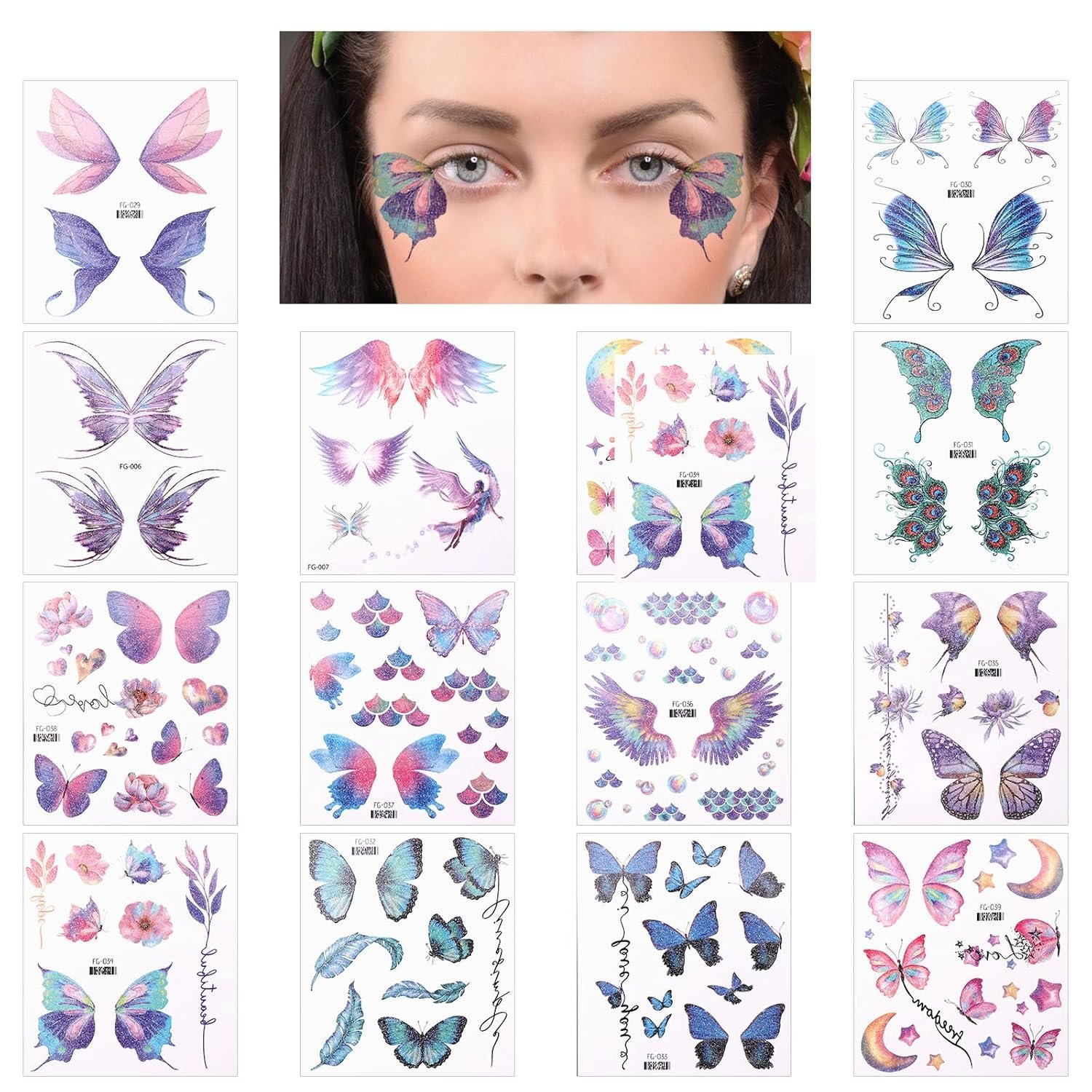 Suitable for Many Occasions: glitter butterfly temporary tattoos for eyes are very suitable for beach parties, pool parties, birthday parties, holiday parties, outdoor parades, Halloween, Christmas, nightclubs, bars, etc., they will make you the protagonist of the party