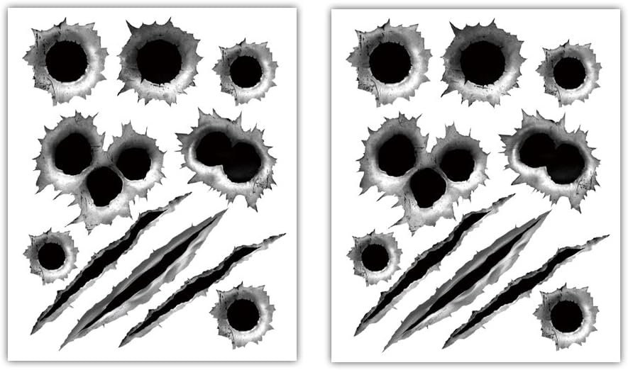 Customers find the bullet hole stickers have a realistic look and are easy to apply, making them a great gag item. The quality and size receive mixed feedback – while some praise the quality, others report bad quality, and while some appreciate the large size, others note the holes aren’t realistic. The stickiness and peeling off are also mixed aspects, with some saying they stick well while others report quick peeling.