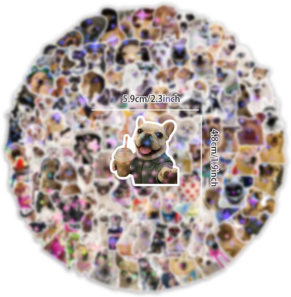 Cute Dog Meme Stickers: Each funny dog meme stickers measures 2.0 to 3.0 inches, designed with vibrant colors and unique details. It adds a magic touch and blingbling visual to any surface, making it an standout decoration for dog lovers. Enjoy a diverse collection of 200 dog sparkle emoji stickers, showcasing a variety of adorable expressions and moods for every dog lover.