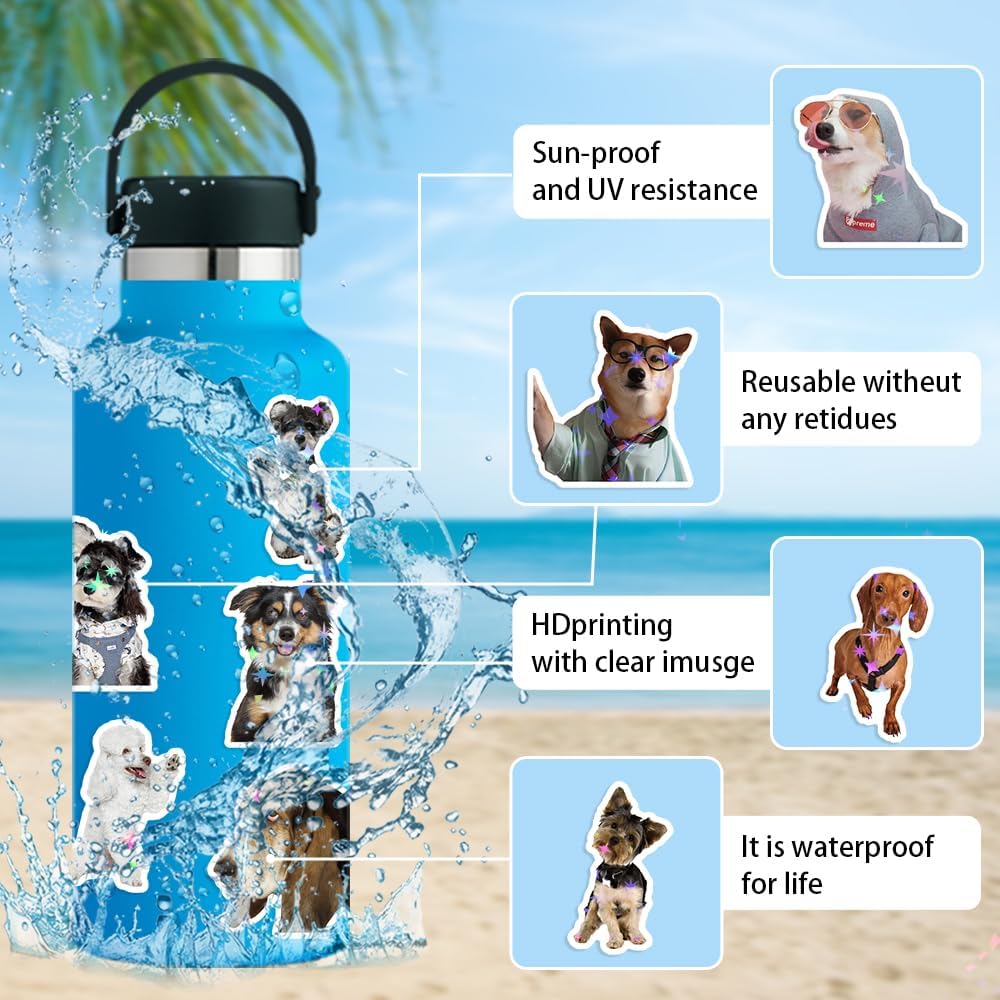Waterproof Vinyl Stickers: Crafted from high-quality vinyl with a stunning holographic finish, these funny dog water bottle stickers decals are water-resistant, scratch-resistant, and ideal for both indoor and outdoor use, ensuring their vibrant colors and durability.