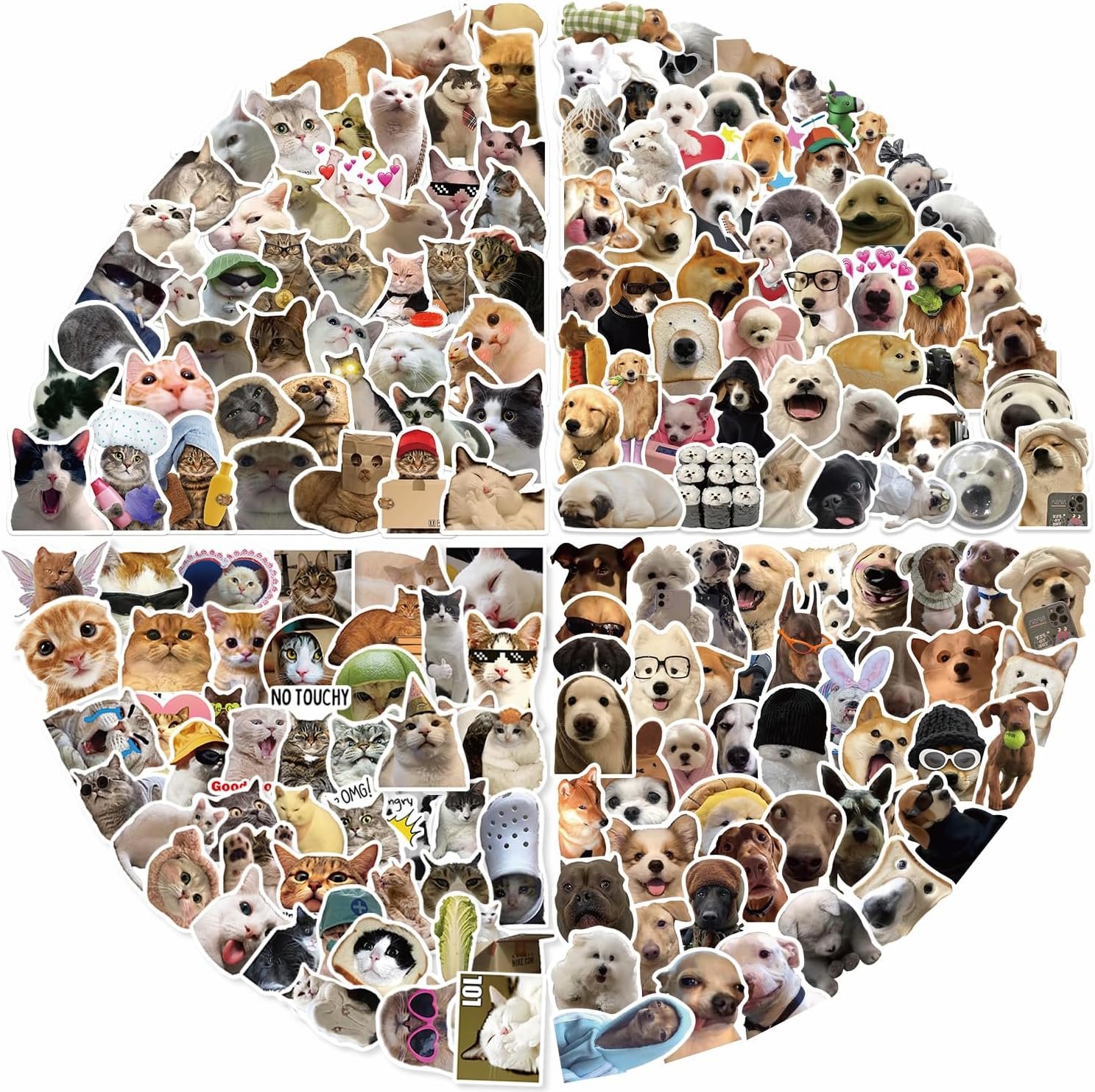200PCS Funny Meme Sticker Cat and Dog Meme Stickers for Adults Pet Stickers Funny Cat Theme Party Favors Waterproof Vinyl Stickers