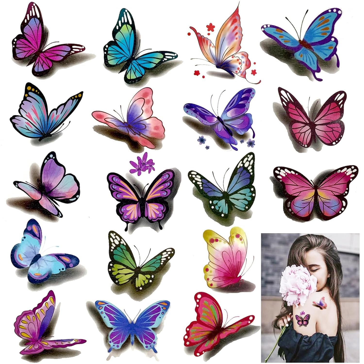 EXQUISITE PATTERN DESIGN–These butterflies temporary tattoos come in purple, green, yellow,blue, pink, multiple color and patterns options, vibrant colors with long-lasting, these tattoo stickers look very realistic for aldult,women,girls,children