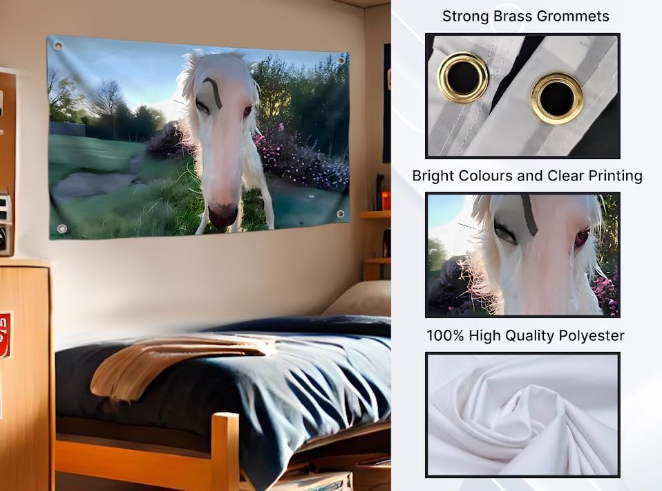Imported 100% polyester flag with large size 3×5 feet/90×150 cm. Funny flag for brdroom cute dog is perfect for college dorm room decor, home, bedroom, parties, beach, man cave, garage, festivals. Epic dog with eyebrow for teen dorm room decor, cool tapestry for boys and girls bedroom wall decor. Meme tapestry with a unique design for your workspace, man cave or a cute 3×5 poster for your home. Funny polyester animals flags for room girl and boys, funny dog wall tapestry 3×5 feet wall decorations made from durable polyester, cute banner attaches easily thanks to metal eyelets at corners. Meme banners for wall decor bedroom guys with indoor and outdoor, funny animal dog wall flag for bedroom girl and boys with unique animal design features bright colors meme energy in every detail. A nice gift for students, young people, classmates, friends, organization, family, adults, etc. And a nice addition in classroom, garage, house, dorm, college, indoor, garden, home, office, etc.