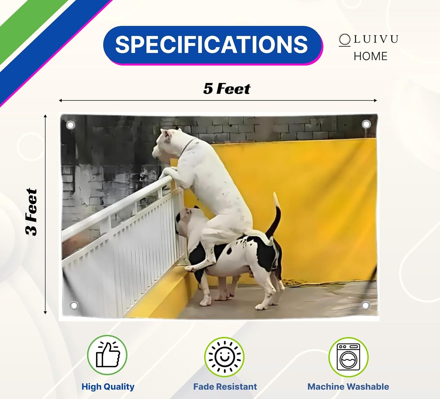 Imported 100% polyester flag with large size 3×5 feet/90x150cm. Banners dog for room gyus, funny flag featuring two dogs demonstrating true teamwork, wall college dorm decor cool tapestry for girls.