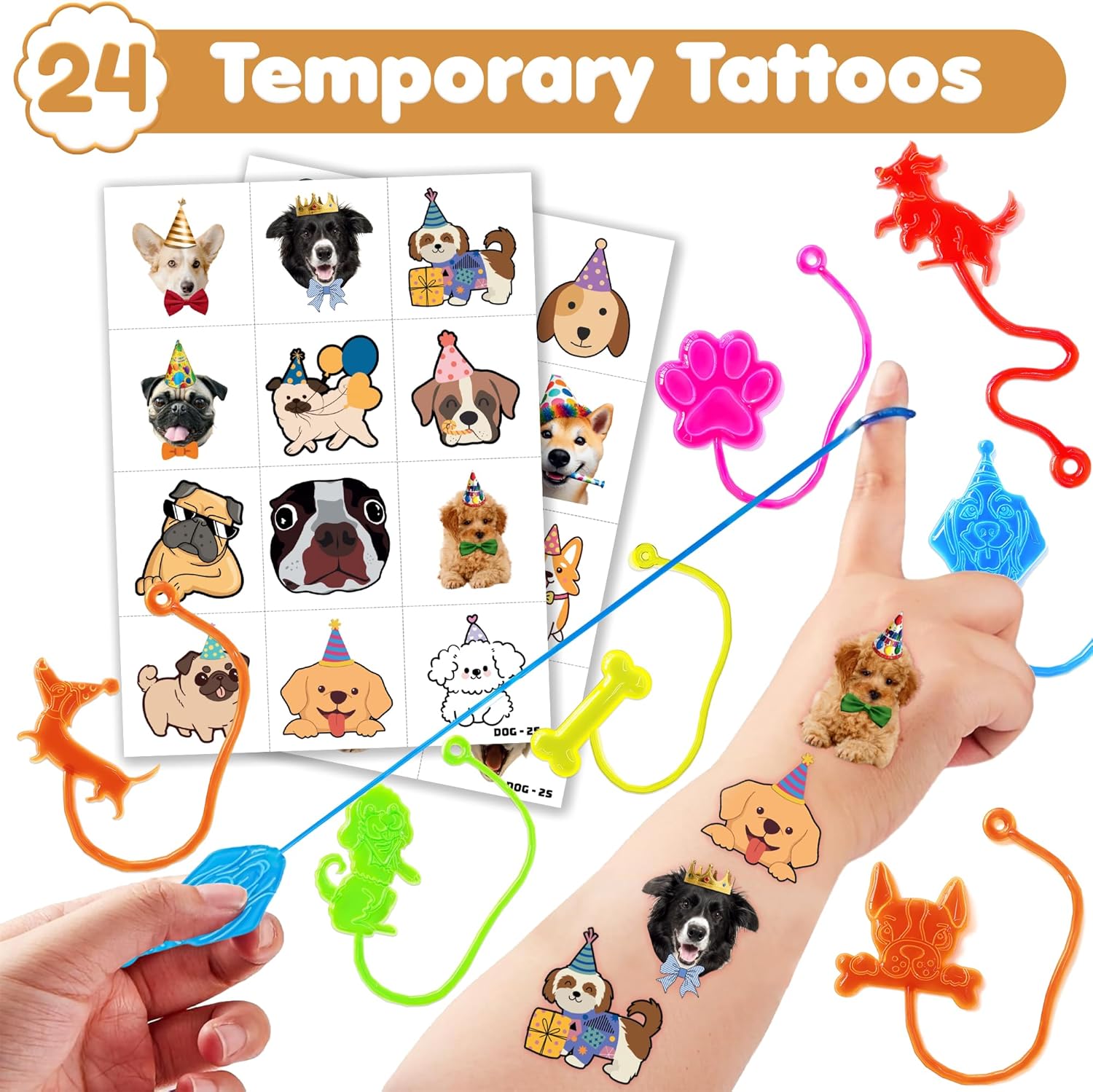 πΎ Dog Goodie Bag Stuffers & Pinata Fillers β Whether youβre throwing a puppy-themed birthday party or need party favors for kids, these dog-themed toys will keep children entertained. The included temporary tattoos add even more excitement, making them perfect for dog party supplies and giveaways.