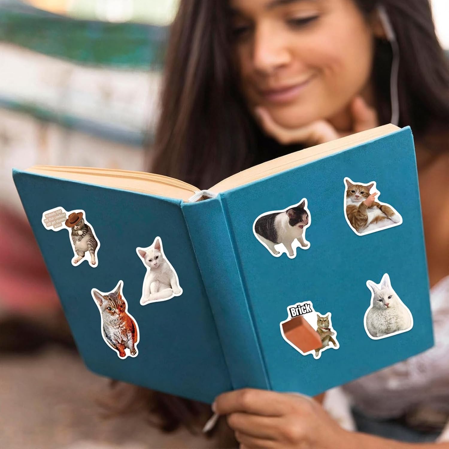 50Pcs Cat Stickers, Funny Cat Meme Stickers for Teens Adults, Cute Meme Decals for Laptop Water Bottle, Waterproof Vinyl Decals for Water Bottle Laptop Scrapbook Journal