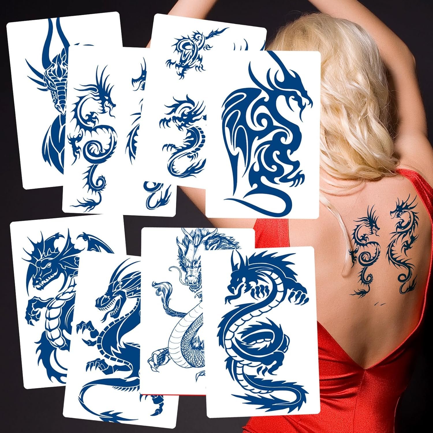 Our 8-sheet dragon tattoo set combines ancient totem symbolism with modern plant-based technology. Each realistic design lasts 5-7 days, giving you professional body art without the commitment!