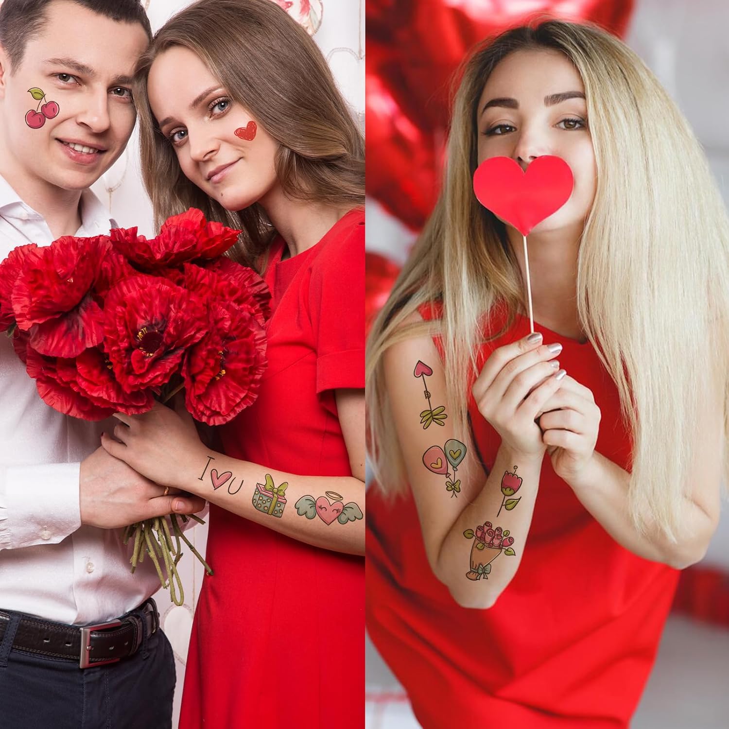 Love valentines day party: These temporary tattoos are a perfect way to add a touch of romance to any occasion with their red-shaped designs.The designs include hearts, shattered glass, origami, love, harmony, romantic partnerships, and Valentine’s Day. With these tattoos, you can confidently express your romantic side and create a memorable experience