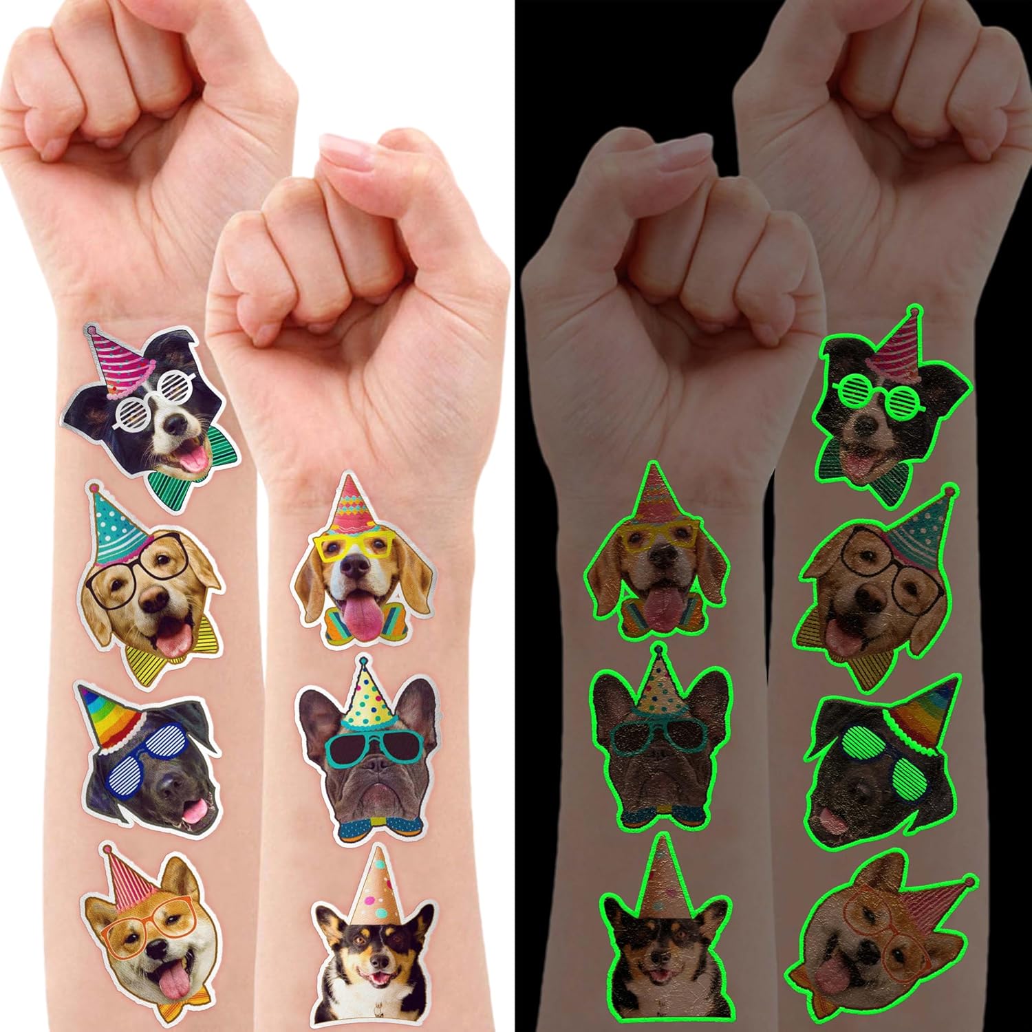 🐶Bring tail-wagging fun to any party with these glow-in-the-dark dog temporary tattoos! Featuring playful puppies, bones, paw prints, and cartoon-style dog designs, these tattoos light up in the dark after exposure to sunlight or UV light. 🐶They’re easy to apply with water and come off gently with soap, making them a great choice for birthday party favors, classroom rewards, or just everyday fun. Perfect for dog lovers of all ages, these glowing tattoos add a fun and friendly touch to any celebration. 🐶Whether it’s a party, playdate, or a fun surprise, these puppy tattoos are sure to bring smiles and glowing excitement!
