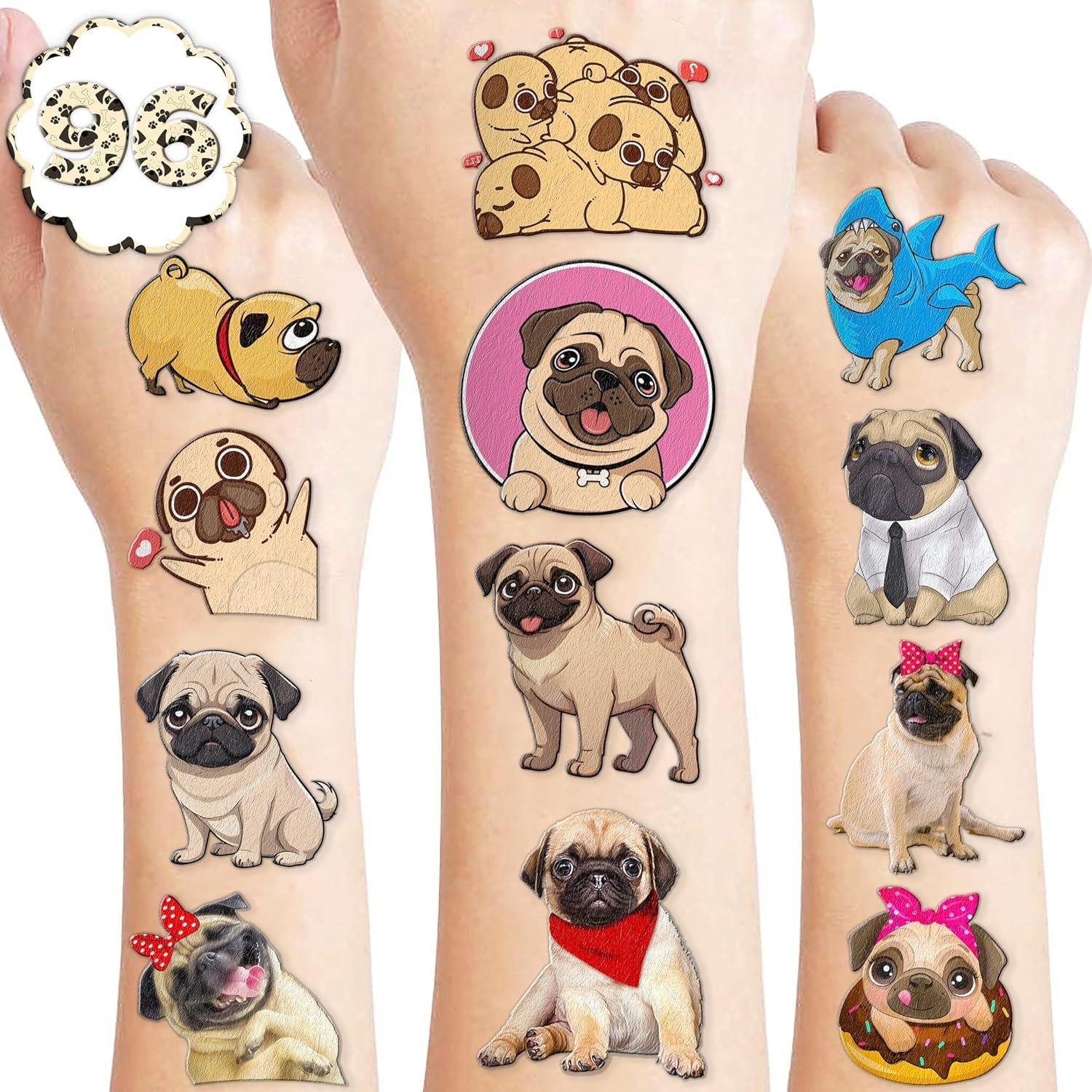 Widely used: These Cute Funny Pug Dog Pet Puppy Little Pugs Frech Bulldog Temporary Tattoos pieces are suitable for many occasions such as birthday parties, baby showers, birthday gifts, party decorations, gatherings and other special celebrations. It also can be applied on laptop, cup, luggage, phone case and so on which could make you look more impressive.