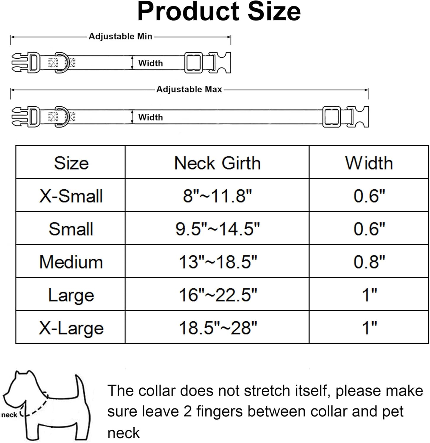 Size L Fit for Dog’s Neck Size 16” to 22.5”: Width is 1”, Use fabric tape measure or a string to measure your dog’s neck, the collar does not stretch itself, please make sure leave ONLY 2 fingers between collar and dog neck.