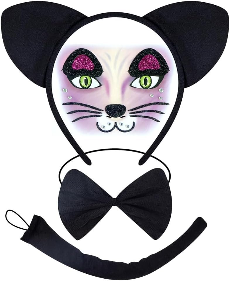 Animal Ears Headband with Face Gems Set, Glitter Art Stickers, Halloween Makeup Accessory Decor