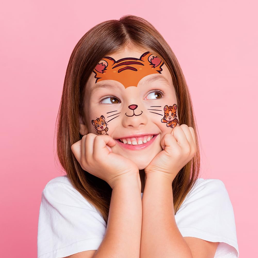 Material:The animal face tattoo sticker is made of high-quality paper and covered with film, which is not easy to fade, durable and waterproof.Use them as party favors and your kids will love.
