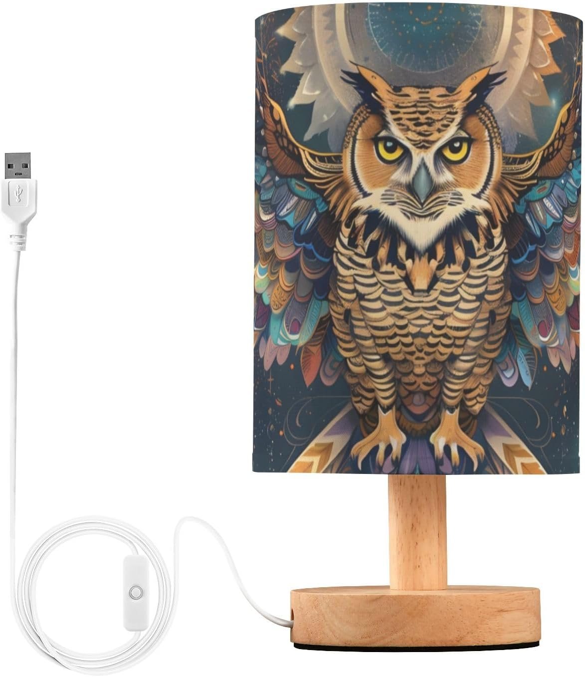 Bedside Lamps Traditional Tattoo Style Owl Spreading Wings Table Lamp with Non-Slip Base Charming Night Light for Bedroom Living Room