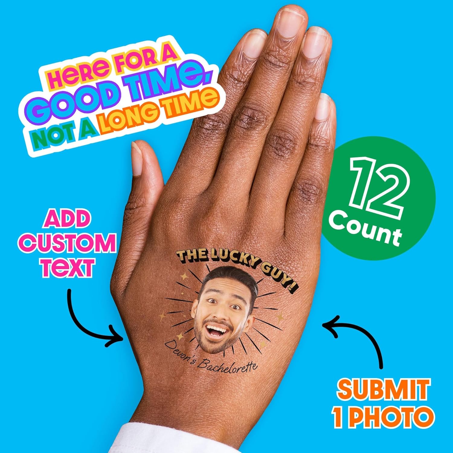 High-Quality: The Custom The Lucky Guy Groom Photo Tattoos are pre-cut and professionally printed on skin-safe material. They will arrive ready to use!