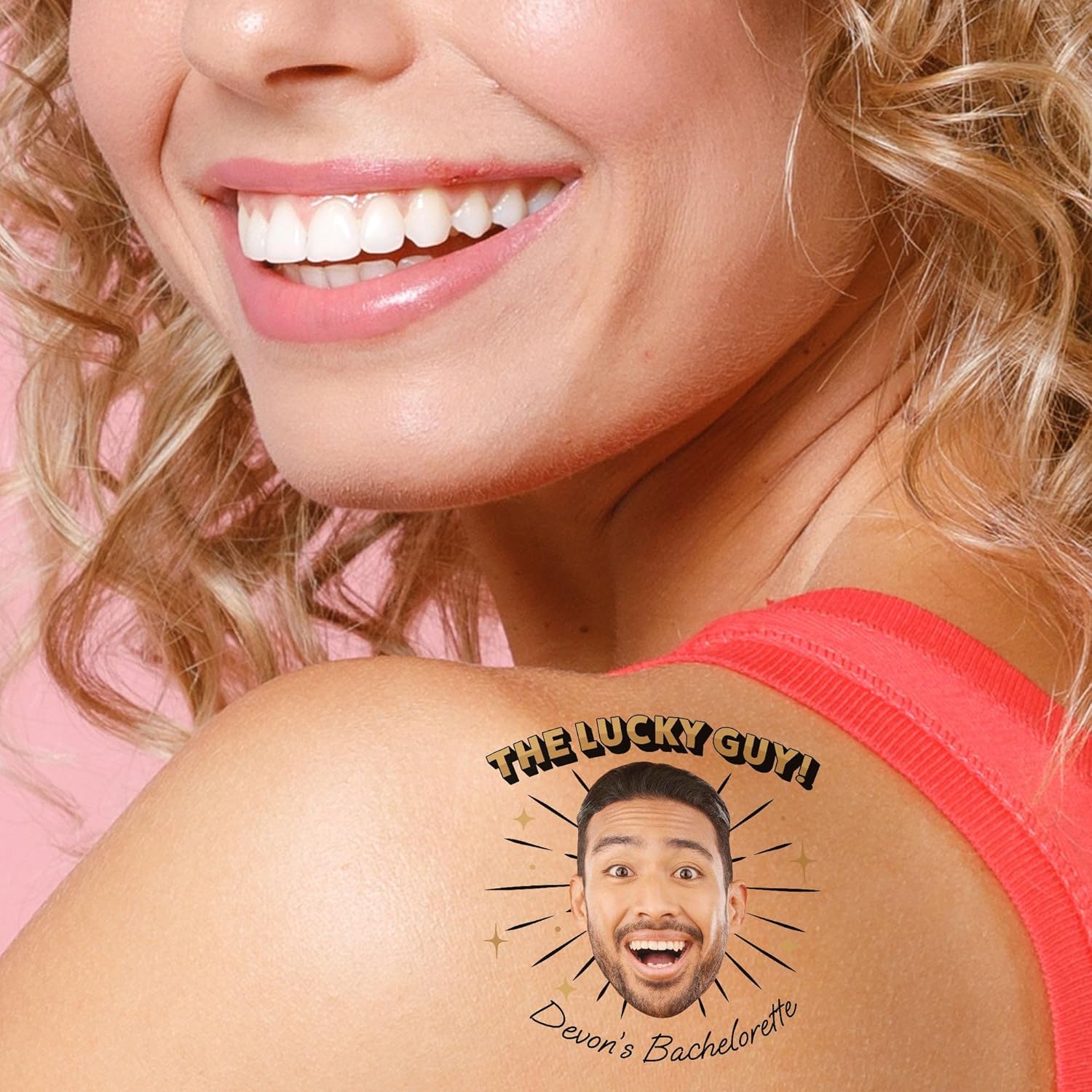 The custom photo the lucky guy groom tattoos are a great way to add some fun and quirkiness to your celebration!