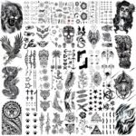 50 Sheets Black Temporary Tattoos For Men Adults Ealge Dragon Lion Wolf Animals For Women Neck Arm Thigh, Fake Small Skull Tattoo Sticker For Kids Children Boys Girls Tatoos