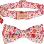 ADOGGYGO Floral Dog Collar with Bow, Red Pink Dog Floral Collar with Metal Buckle, Adjustable Dog Flower Collars for Medium Large Dogs (Large)