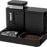 Gravity Cat Feeder and Water Dispenser, 2 in 1 Cat Self Feeder with 180 Degree Rotatable, 2 Pack Automatic Feeding Large Capacity for Small Medium Dog Puppy Kitten, Black, 0.8 Gallon x 2