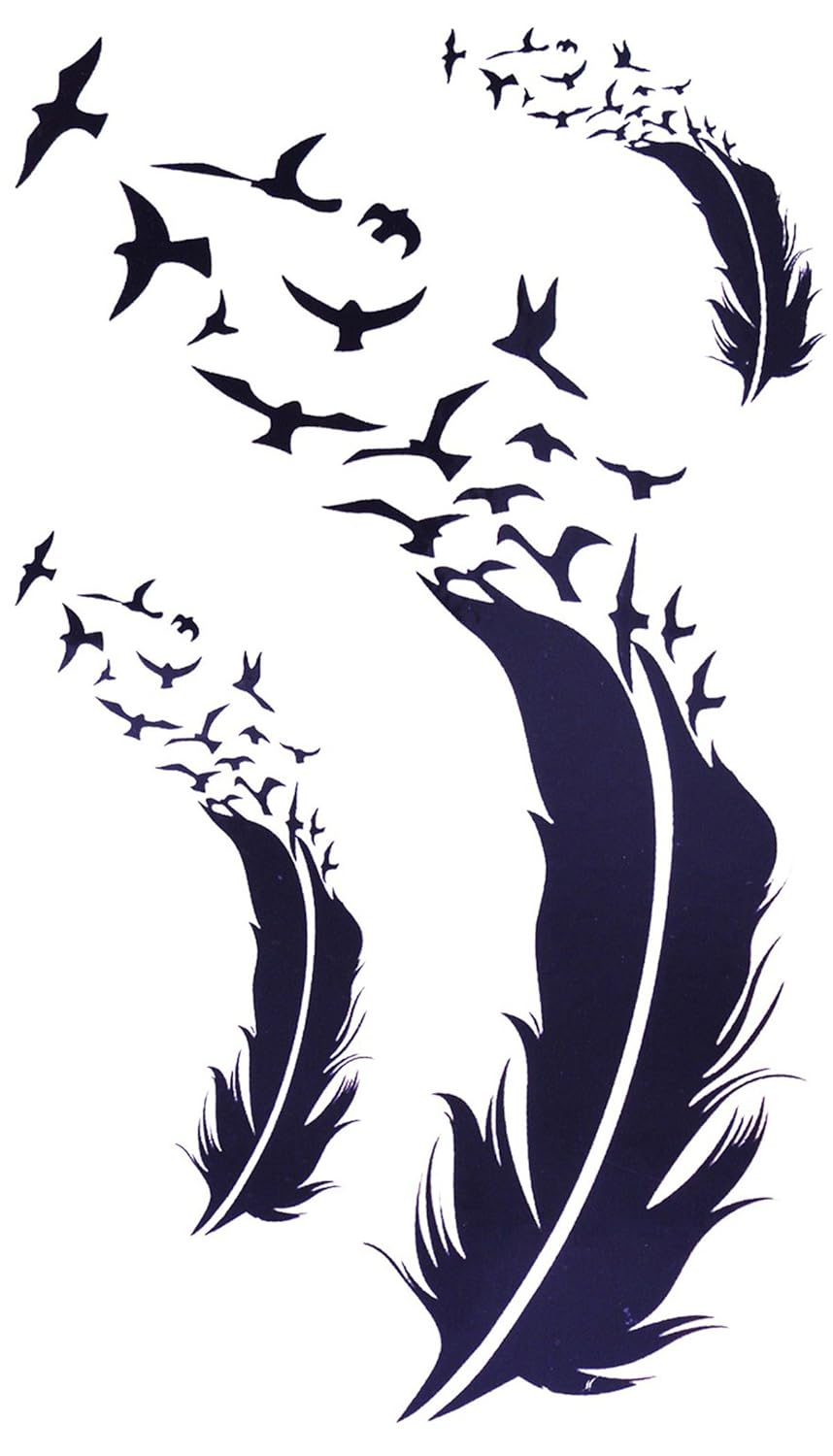 Temporary Tattoos: 10 temporary tattoo sheets with feather bird designs for men and women