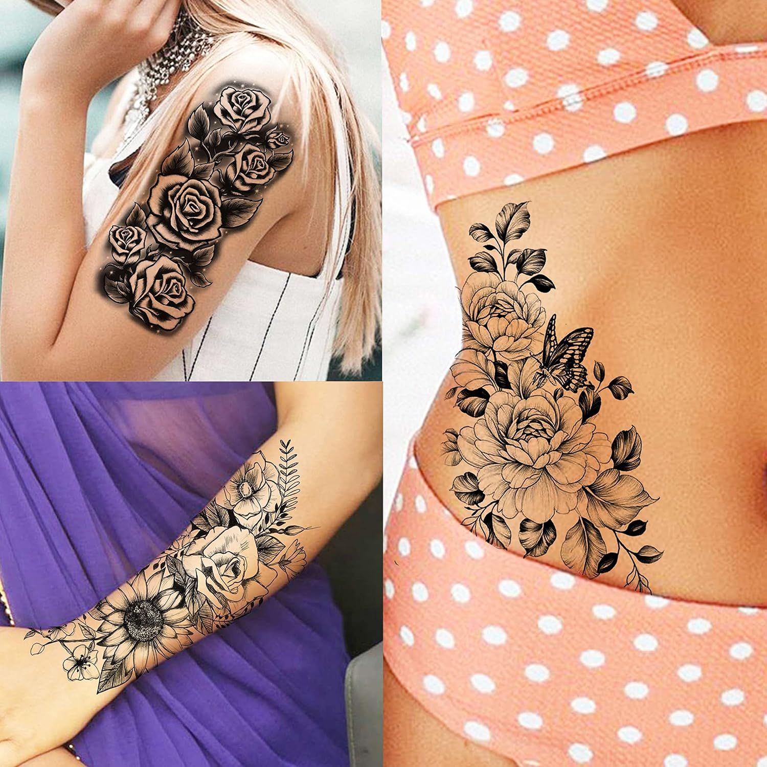 ★【3D Long Lasting Tattoos Temporary】–Keep For 4-6 Days Durable Creative DIY Temp Tattoos Kids Temporary Tattoos For Girls Teens Adults Cool Sexy Girl Feather Birds Dreamcatcher Lion Serpent Snake Rose Floral Blooming Flower Blossom Bohemia Boho Tribal Sunflower Vintage Vines Peony Dahlia Tulip Violet Glory Branch Orchid Lily Marigold Black Tiger Moon Lotus Cross Butterfly Anchor Compass Eye Wolf Lion Dandelion Tatoos Elephant Turtle Mandala Flower Birds Dreamcatcher.
