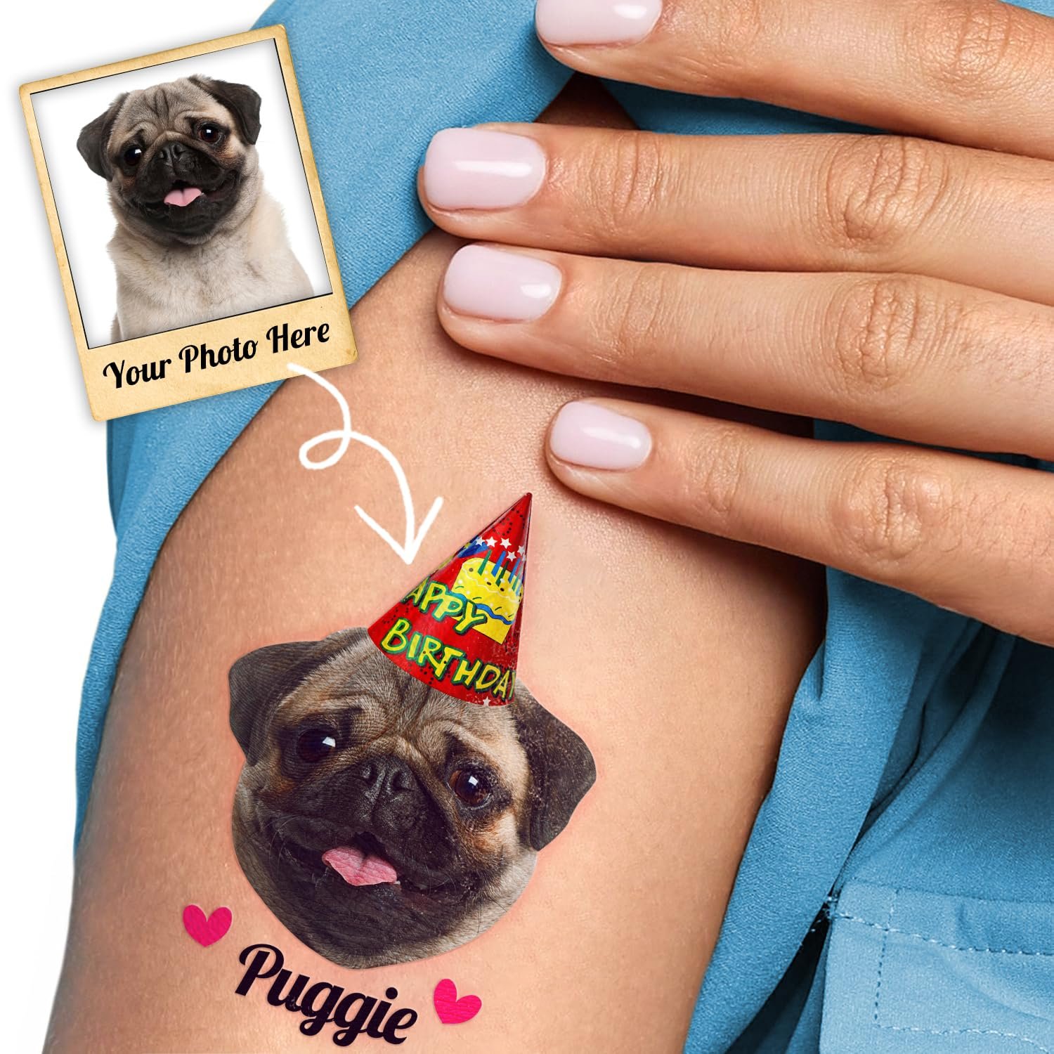 Unique Personalization: Upload one photo and we’ll transform it into 20 fun tattoos, each styled with all 5 of our festive birthday hats. Add a name, age, or custom text for a design that’s truly yours.