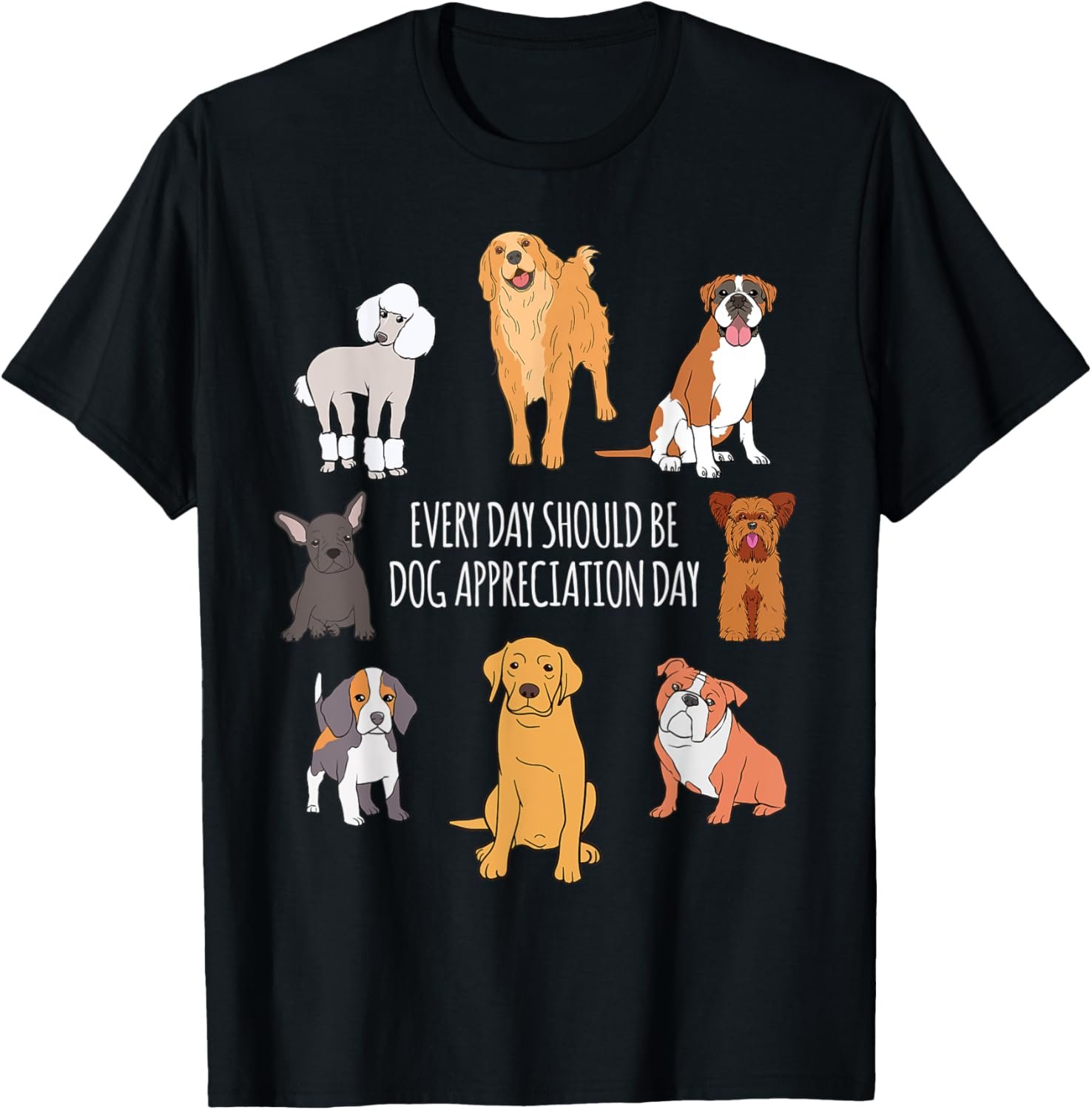 This design features cute dogs with the meme style saying of Every Day Should Be Dog Appreciation Day. Unique happy national dog day themed gift ideas stylish for women, girls, and kids alike.
