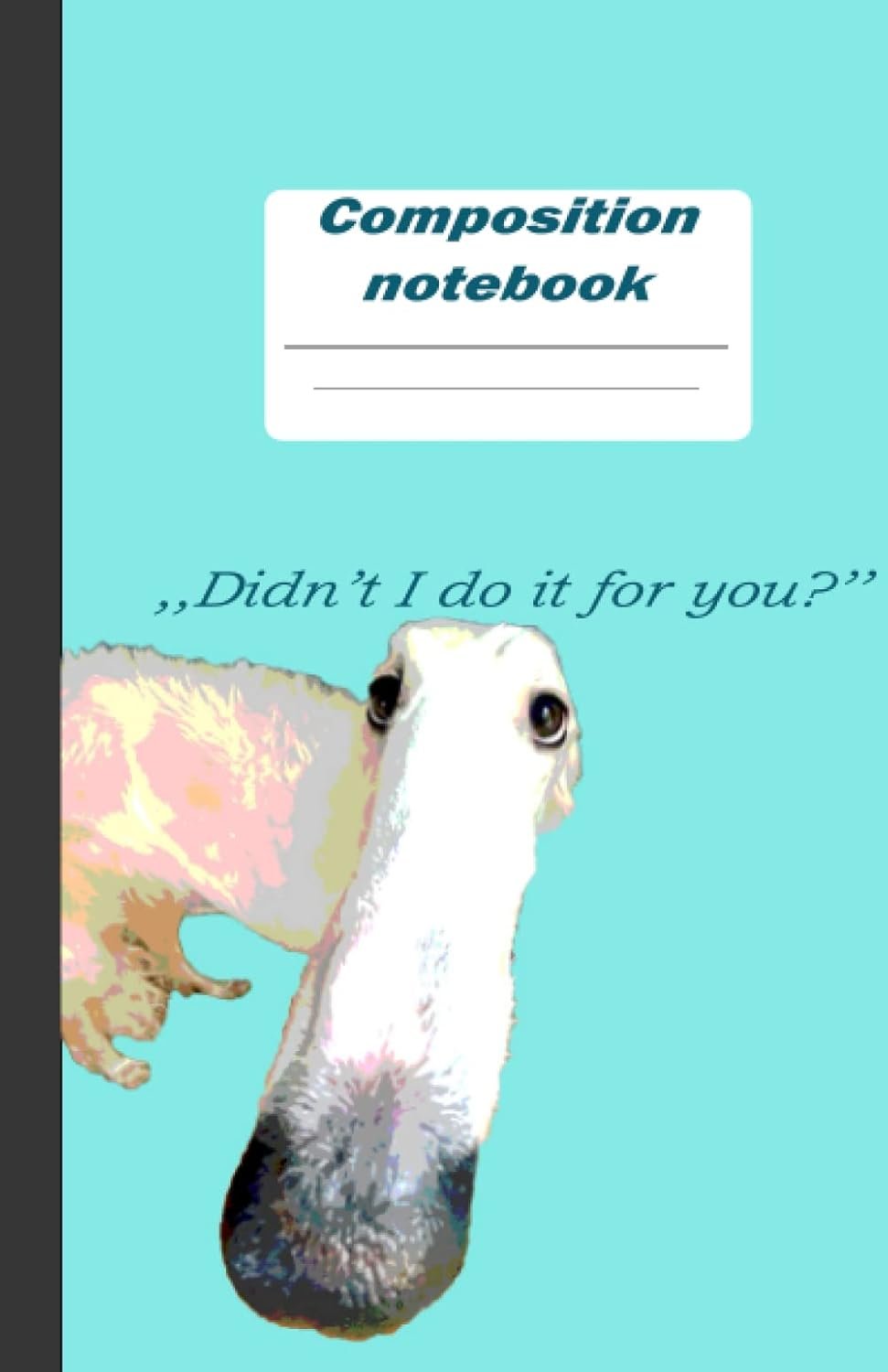 A unique, amusing colourful stylized notebook inspired by the long nose dog meme