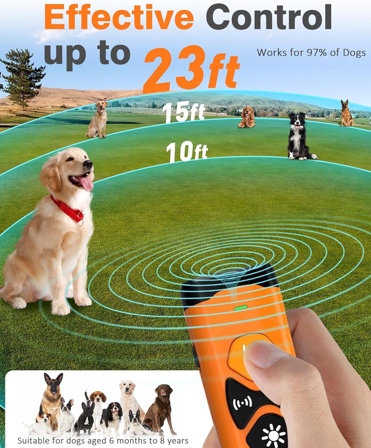 3X ENHANCED EFFECTIVENESS & LONG RANGE: With 3 high-performance sonic emitters, our dog bark deterrent devices deliver triple the barking control power compared to single-emitter models. Safer than shock collars and more effective than whistles. It reaches up to 23 feet—suitable for managing your and neighbors’ dogs