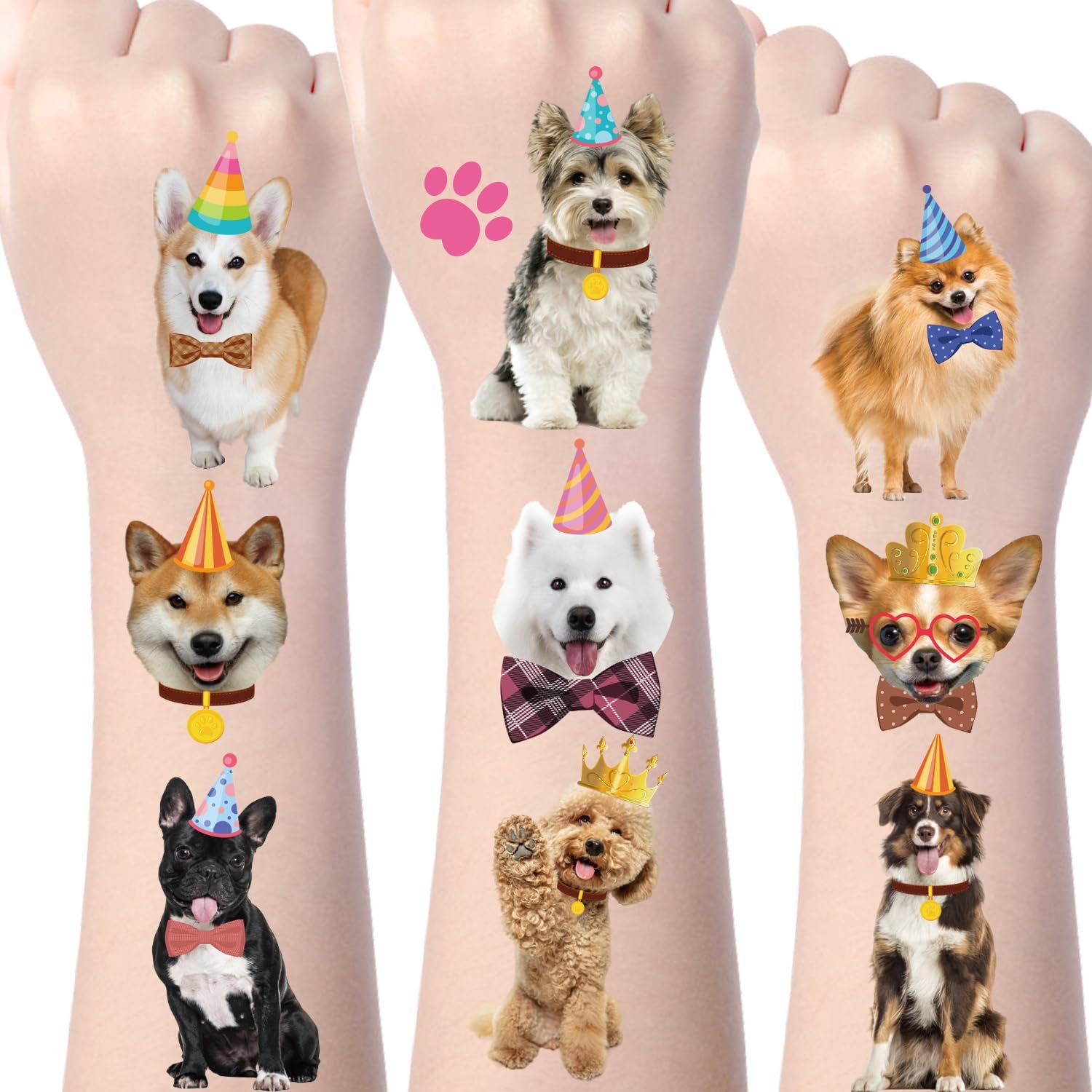 Dog Temporary Tattoos: You will receive 8 cute puppy tattoo stickers, combining dog and birthday elements, as well as cute dog footprints and bones, more than 20 patterns, and full of fun and vitality. It is attractive to young people and children.