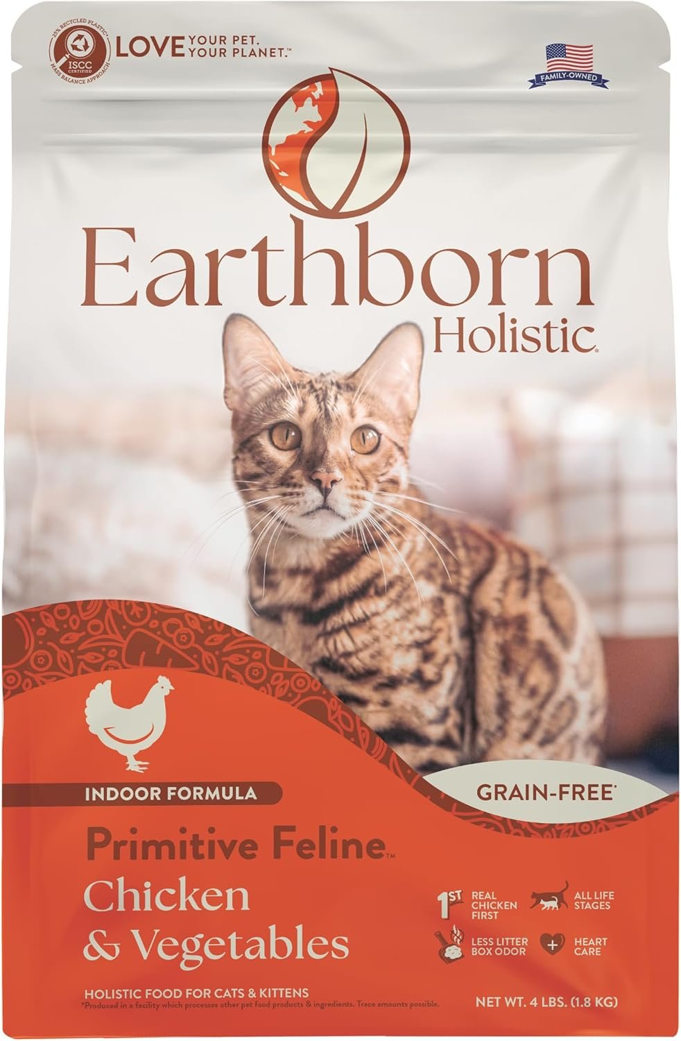 Earthborn Holistic Primitive Feline is formulated to provide total wellness for both cats and kittens. Cats are true carnivores and so they crave protein from high-quality sources like turkey, chicken, herring, salmon and whitefish. Earthborn Holistic Primitive Feline is formulated to provide this high-protein nutrition with a taste your cat will love. Along with protein, there’s a healthy mix of vegetables and fruits, which contain antioxidants important for everyday optimal health. Vitamins and minerals help support your cat’s immune system. This grain and gluten-free diet is a healthy alternative and is sure to be one your cat will enjoy.