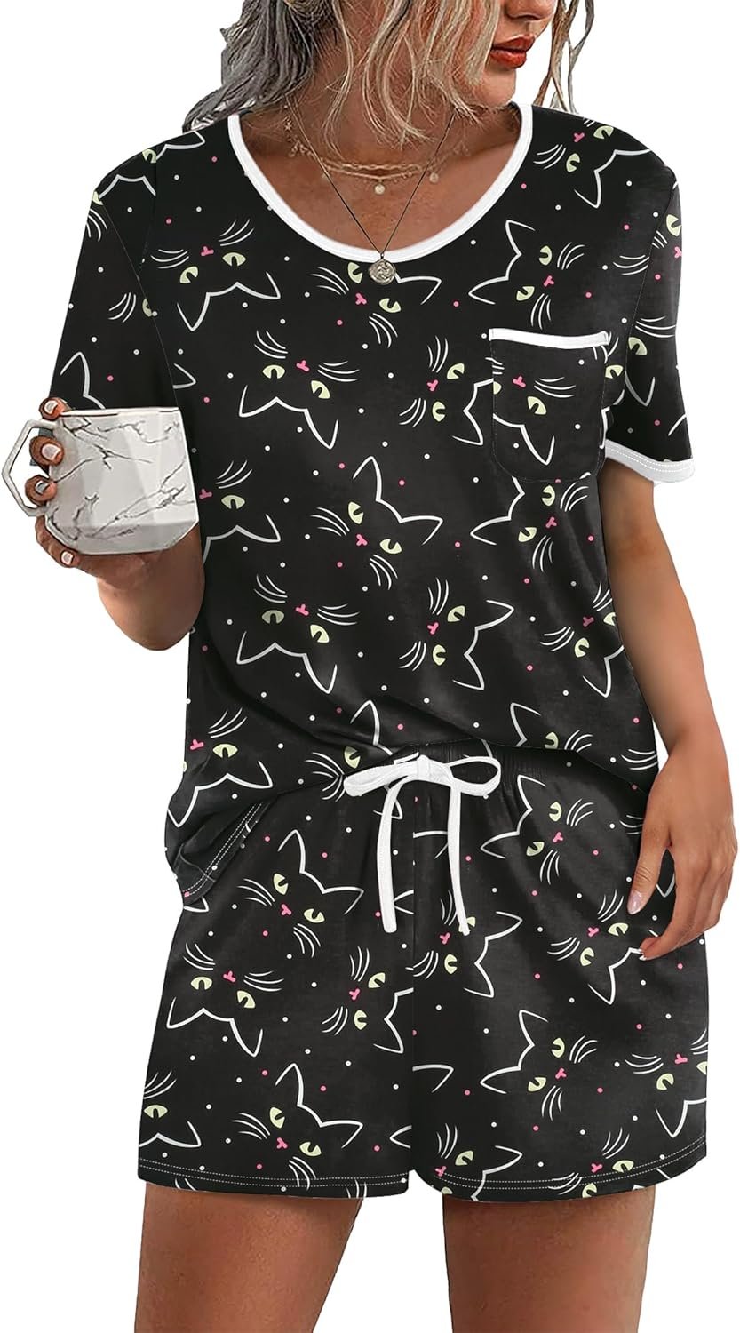 Ekouaer Pajamas for Women Set Cute Star Two Piece Short Sleeve Loungewear Sets