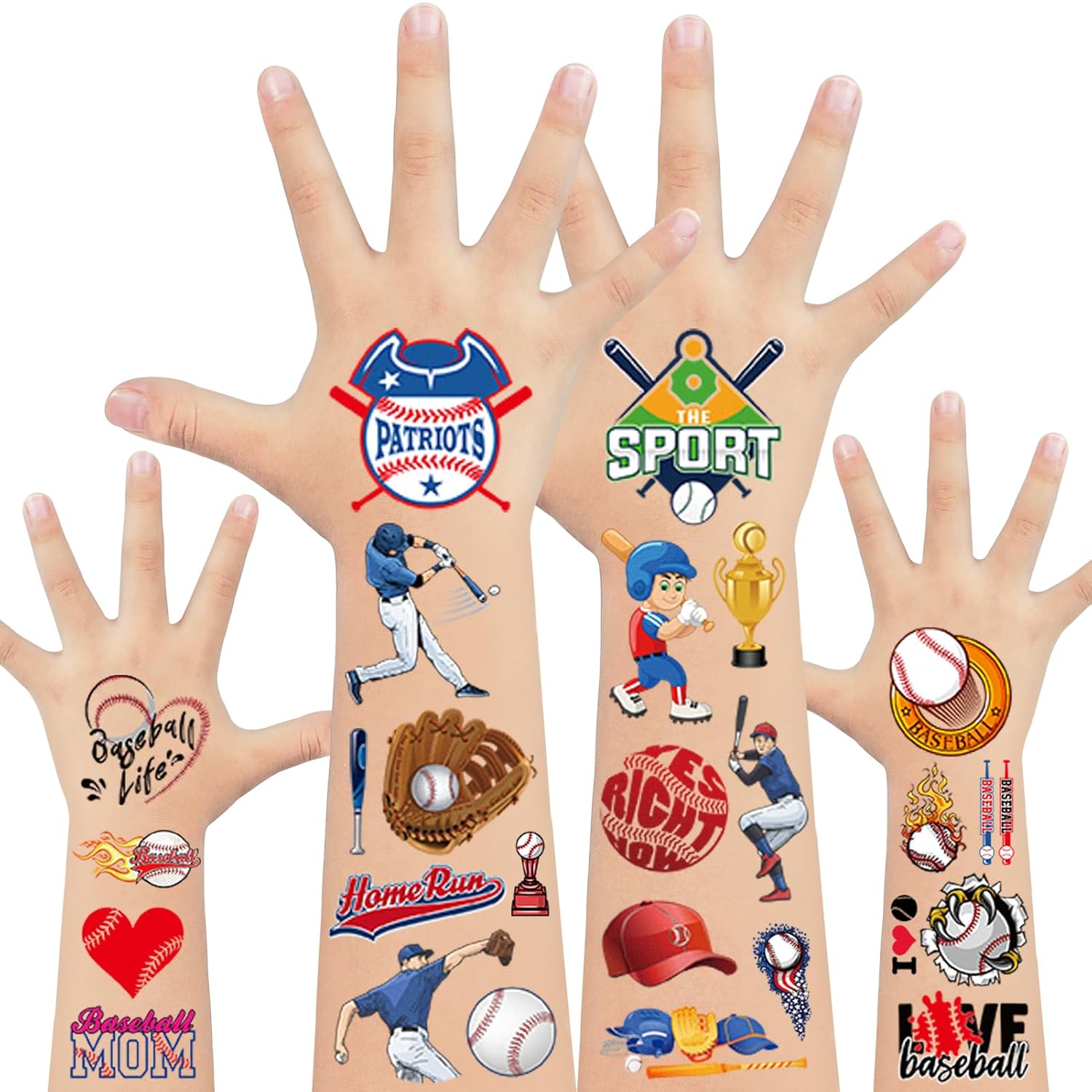 【Premium Quality】Our baseball tattoo stickers are made of water transfer paper, and the surface of the tattoos is printed with eco-friendly ink; and covered with PET protective film. These temporary tattoos are safe, non-toxic, and waterproof. Safer for use without worries.