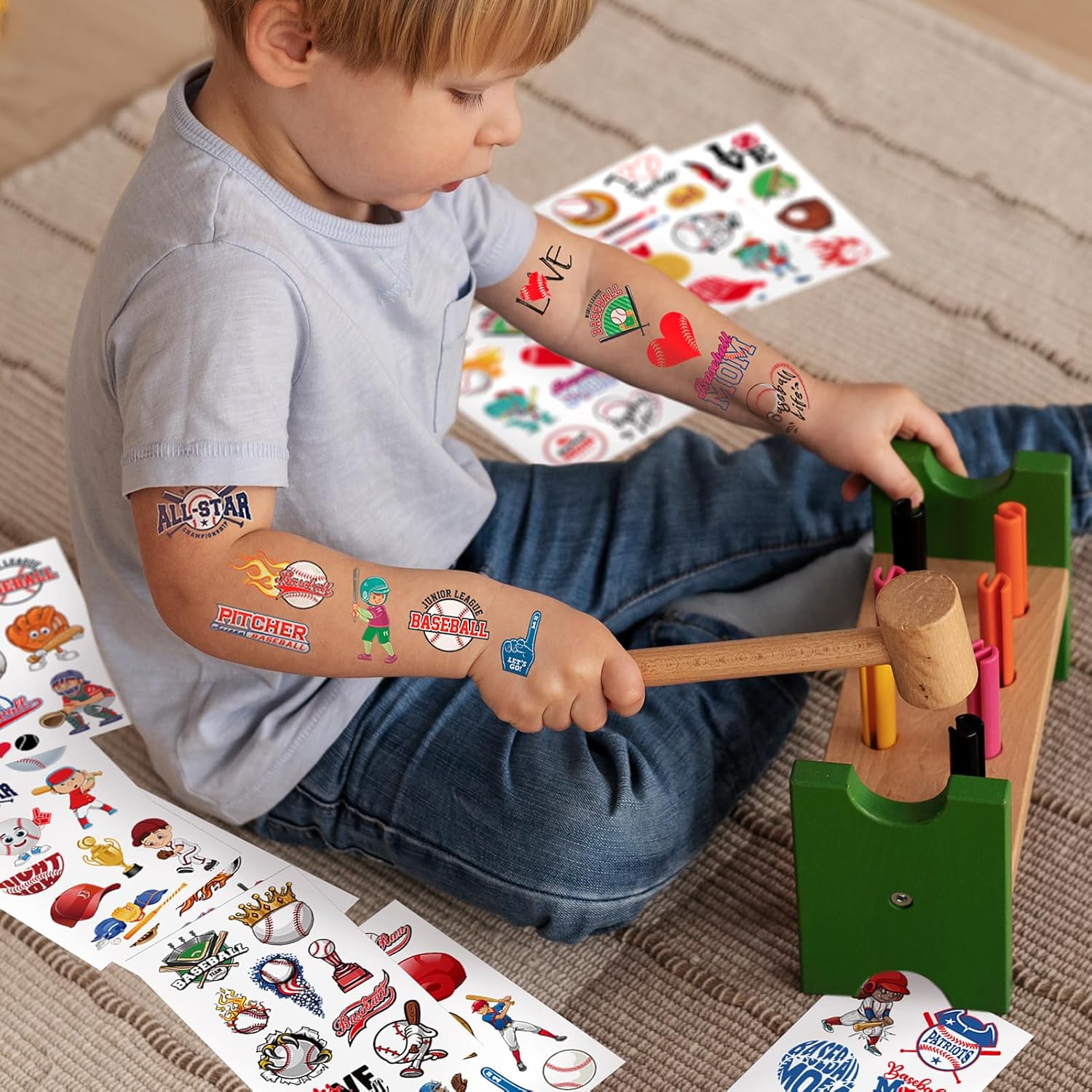 【Widely Applications】And it can be used as baseball party decorations, party favors, party supplies, party bags, goodie bag stuff, awards, treats, and so on. Tattoo stickers can not only stick to arms and faces but also decorate kids’ daily necessities such as lunch boxes, stationery, school bags, and water cups. Different patterns can be freely combined to meet kids’ creative needs.