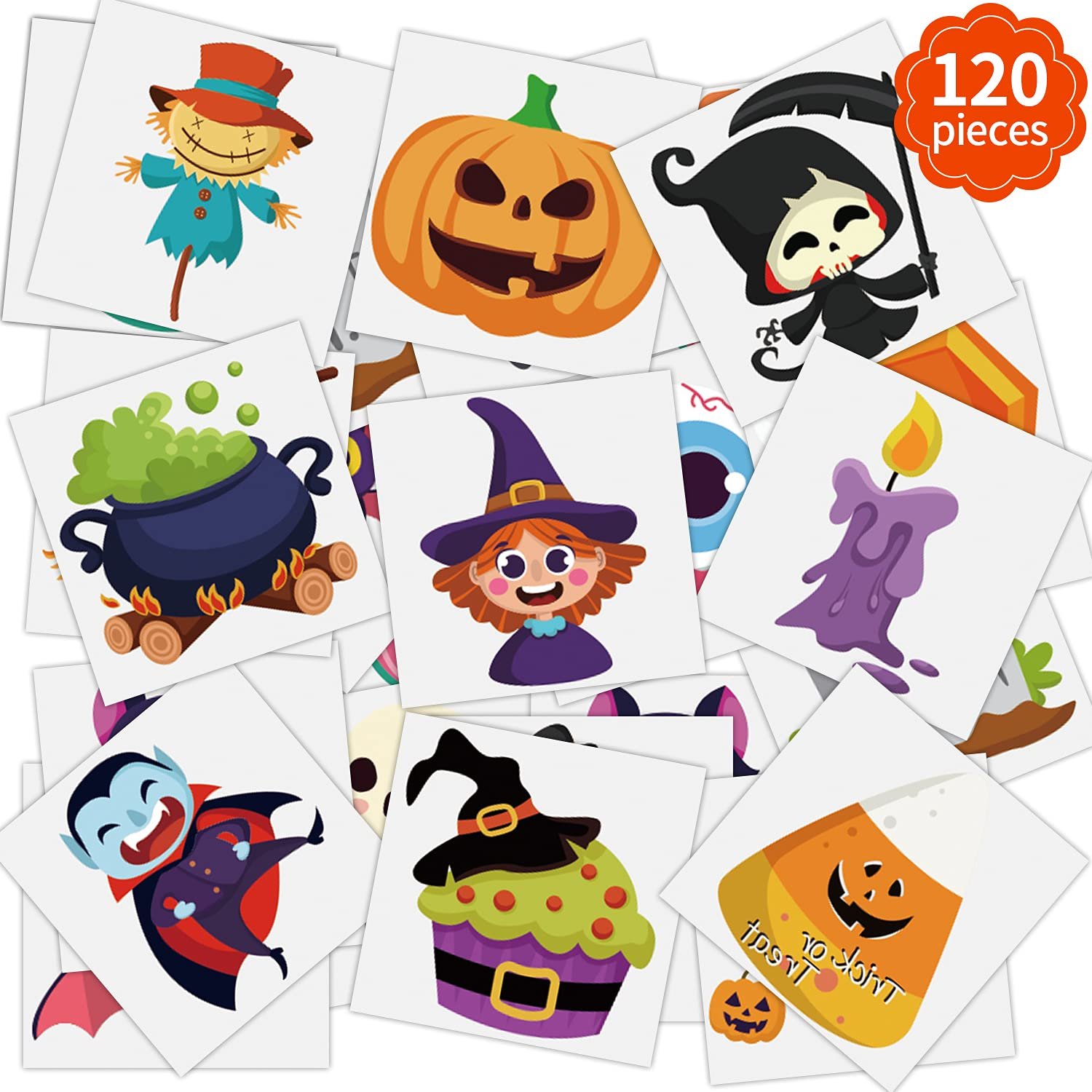 20 Unique Patterns: You will get 120 pieces Halloween temporary tattoos in 20 patterns, 6 pieces per pattern. sufficient quantity to share family and friends throughout Halloween