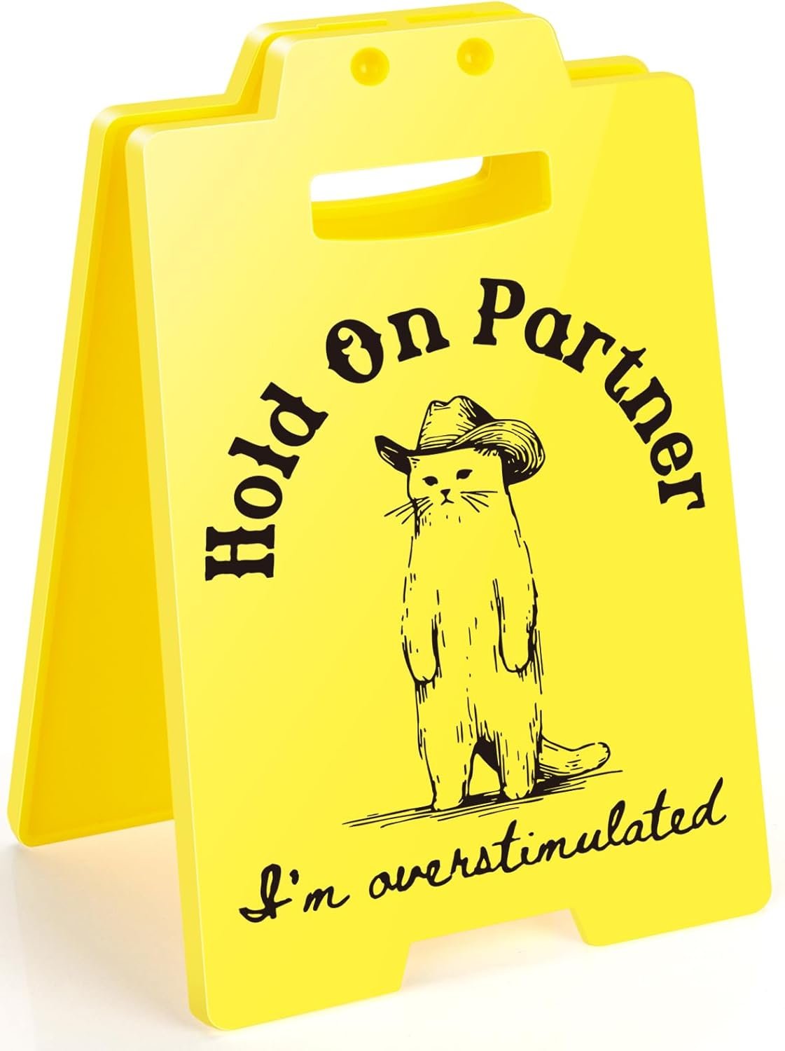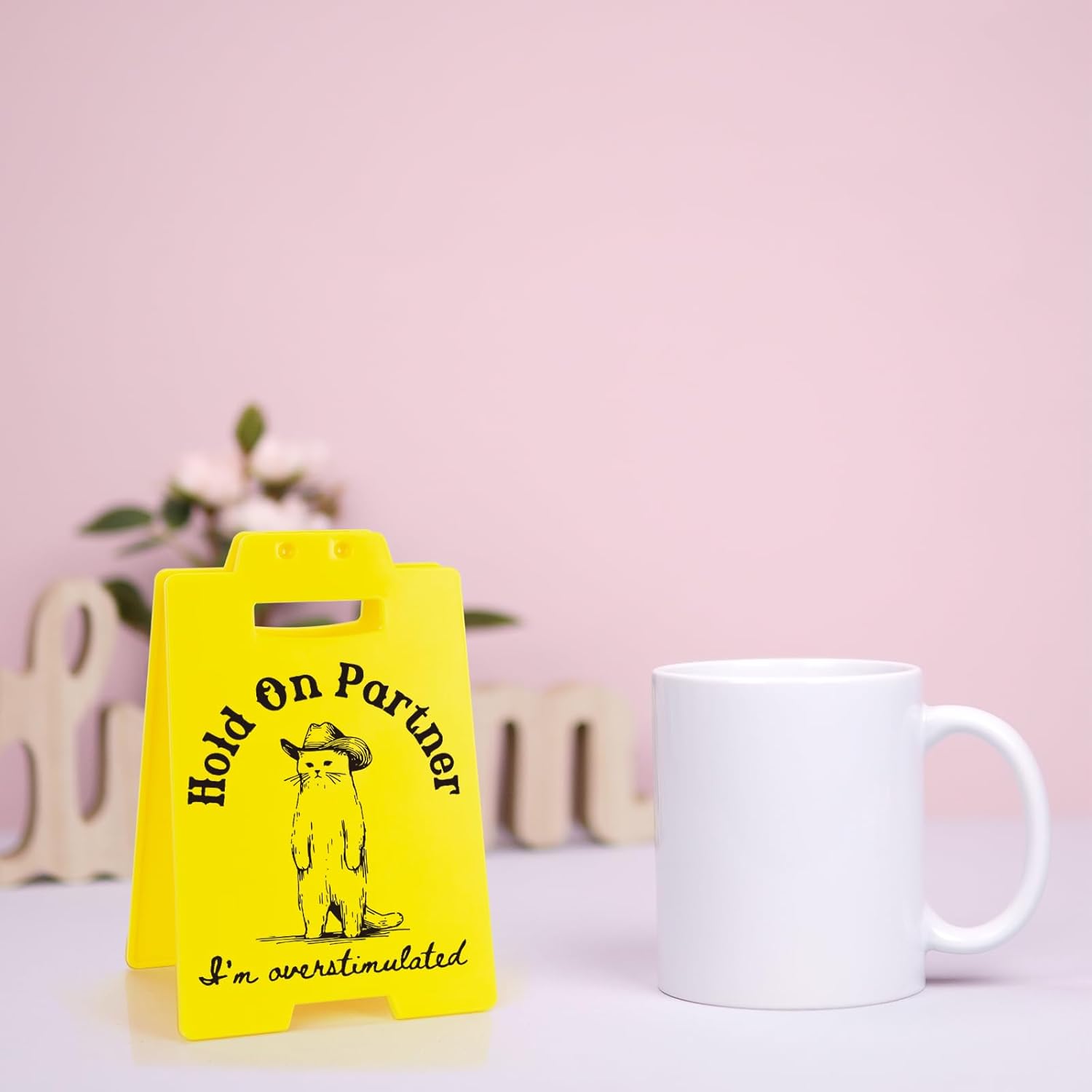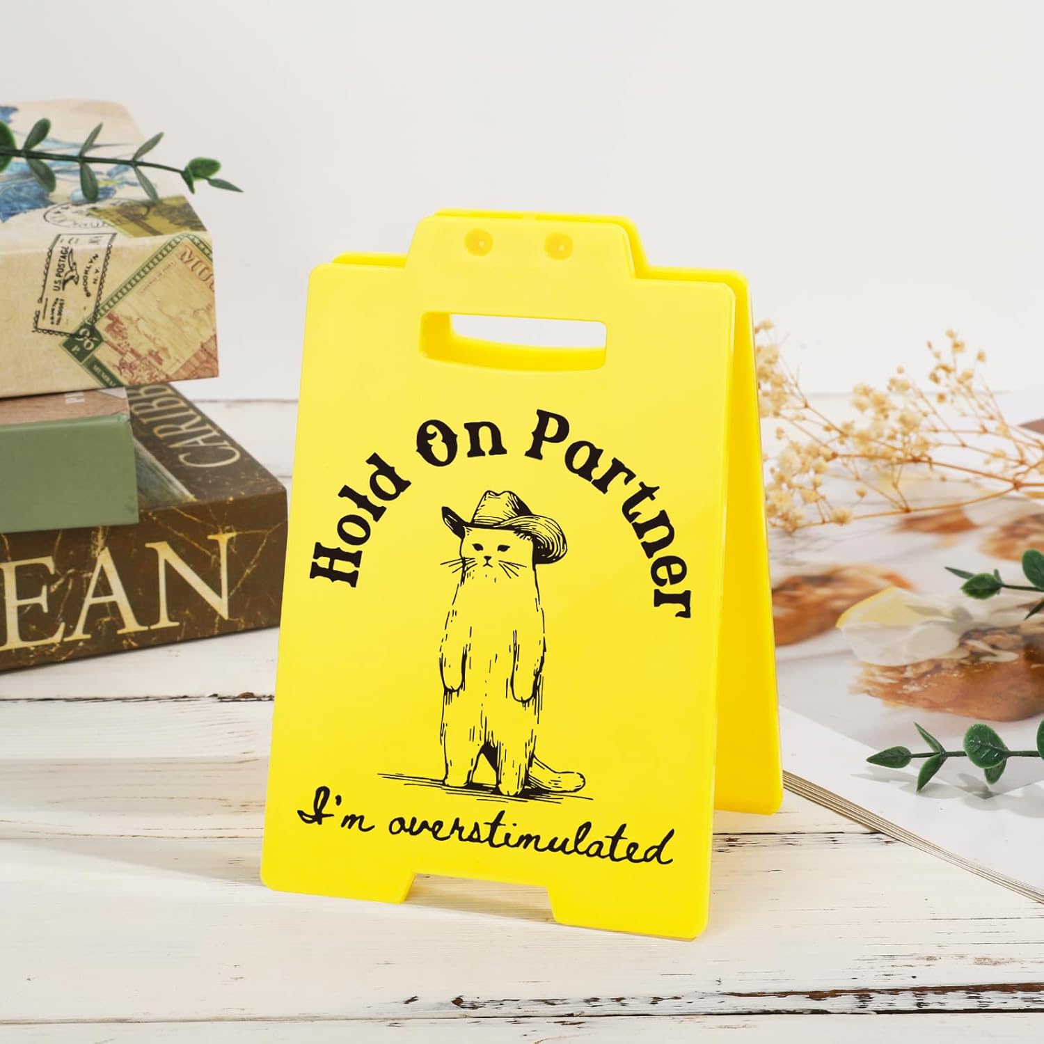 HILARIOUSLY RELATABLE MOOD: Channel your inner cowboy cat and tell the world to “Hold on, Partner!” This desk sign perfectly captures the feeling of being overstimulated with a heavy dose of humor. It’s the ultimate statement piece for anyone whose social battery is often running low, making it a brilliant piece of decor for your desk or cubicle.