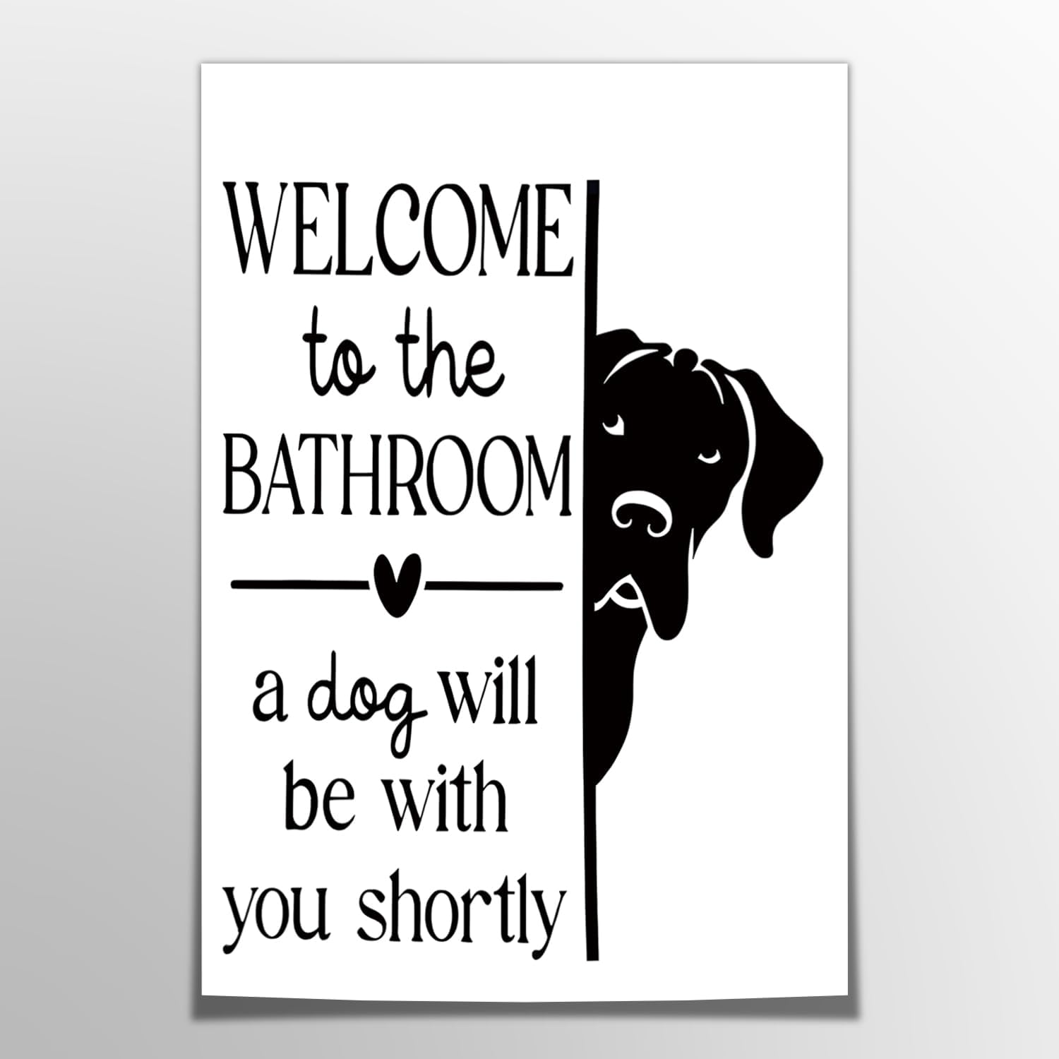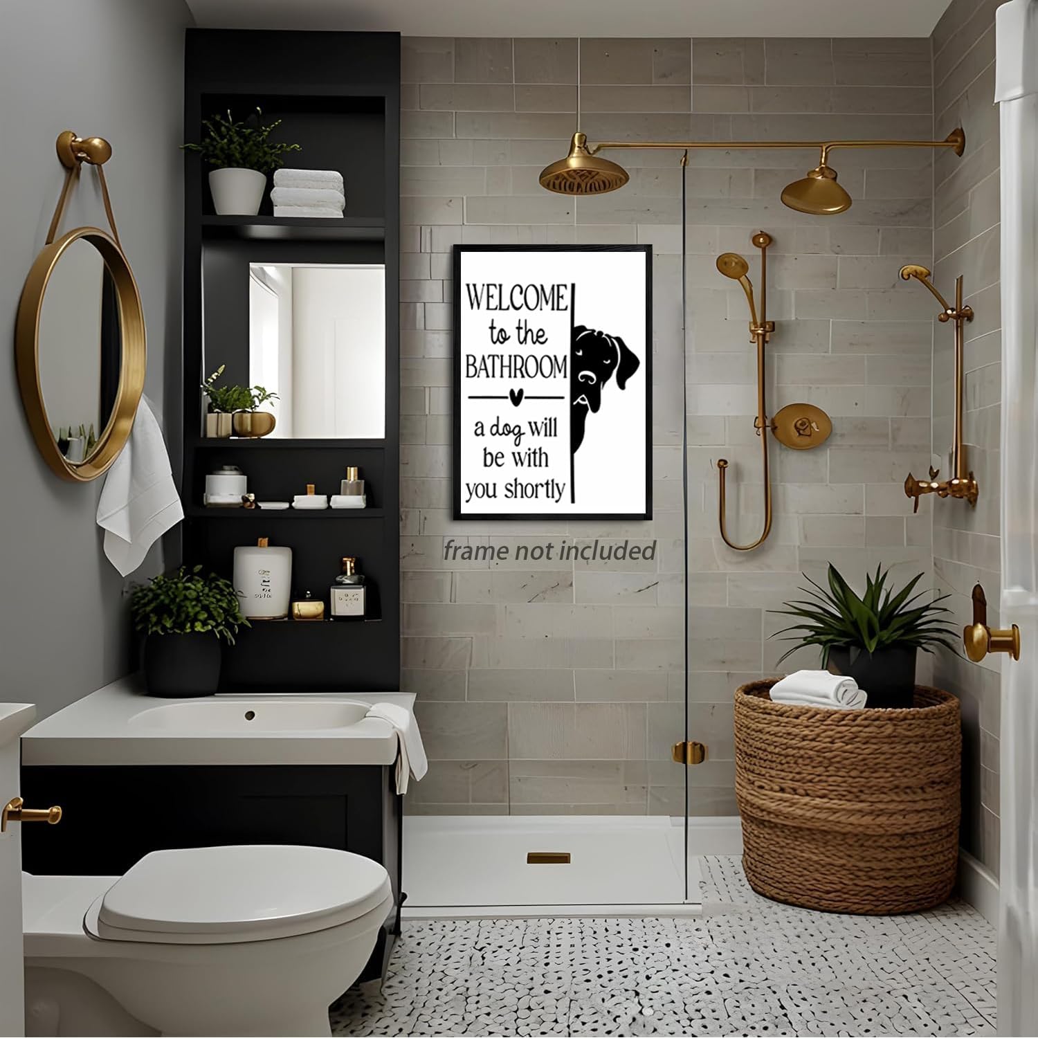 Funny Dog Bathroom Sign Wall Art: Black and white canvas print with the quote “Welcome to the Bathroom, a Dog Will Be With You Shortly”. It’s the kind of wall art that makes people smile, laugh, and snap a picture.