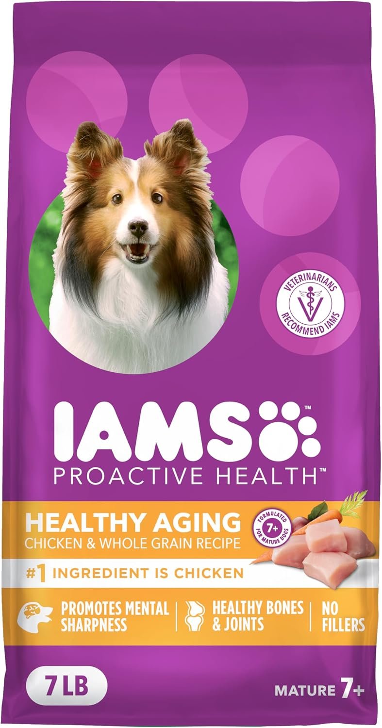 For every stage of life, there’s IAMS nutrition. IAMS Proactive Health Healthy Aging Dry Senior Dog Food with Real Chicken is formulated for the unique needs of senior dogs. As dogs enter the Healthy Aging period later in life, they tend to gain weight, lose lean body mass, and experience an immune response decline. IAMS Proactive Health Healthy Aging recipes help your best friend maintain strong muscles and a healthy immune response with delicious dry kibble that is made to be lower in fat, higher in protein, and higher in Vitamin E and Beta-carotene compared to IAMS Minichunks Adult recipes. Made with real chicken as the first ingredient, this premium recipe features no artificial preservatives* or flavors, and 0% fillers. With essential minerals like calcium and natural sources of glucosamine and chondroitin to support bone and joint health in senior dogs, this recipe is the perfect meal to keep your aging pup active and ready for life’s everyday adventures. Help keep your dog healthy, happy, and playful for life with tailored nutrition from IAMS dog food.
