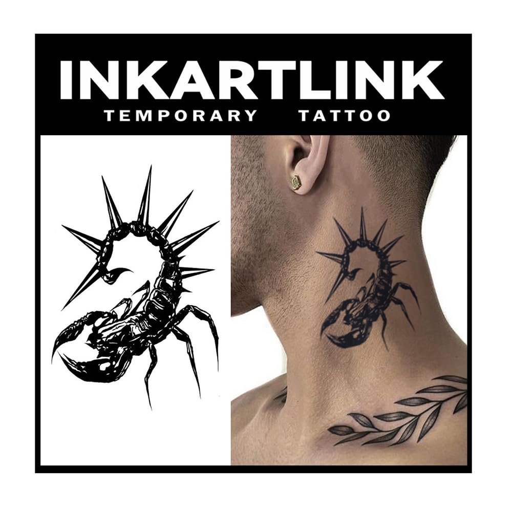 INKARTLINK Tattoo Tech, 2 Sheets Medium Semi Permanent Tattoo, Adult Art Design Temporary Tattoos, Lasts 1-2 Weeks, Waterproof, Realistic Look, No Reflection (scorpion)
