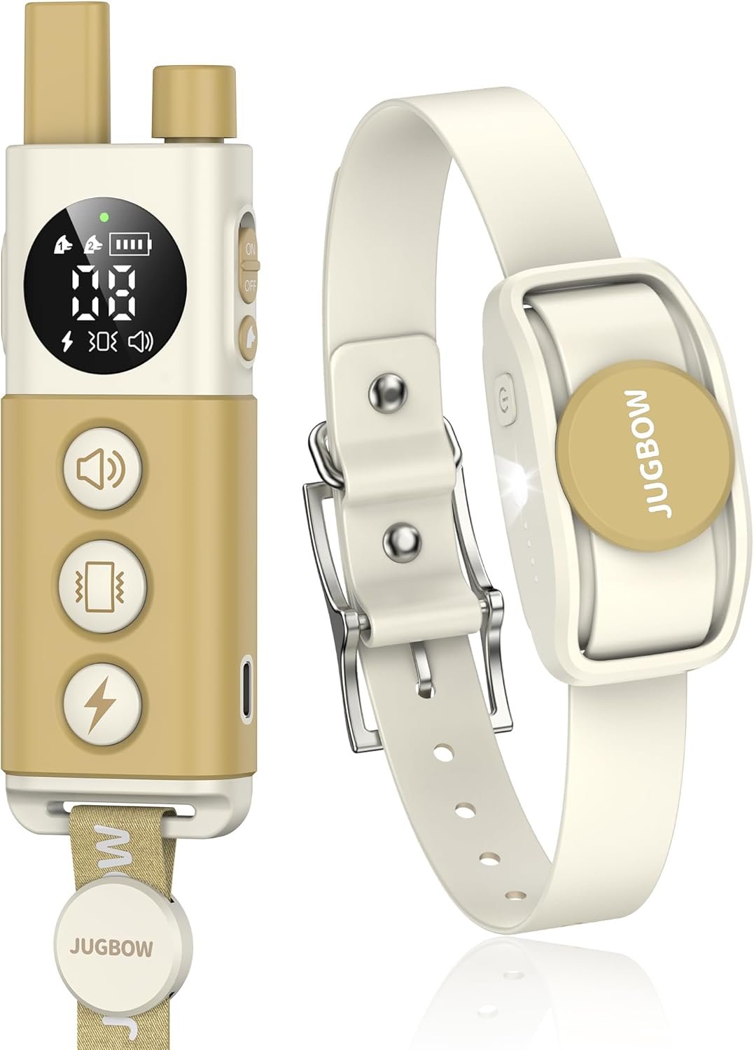 Jugbow Dog Training Collar – Electric Dog Shock Collars with Remote Control, IPXE E-Collar for Small Medium Large Dogs, Beep, Vibration, Safe Stastic, LED Light & Rechargeable (Beige)