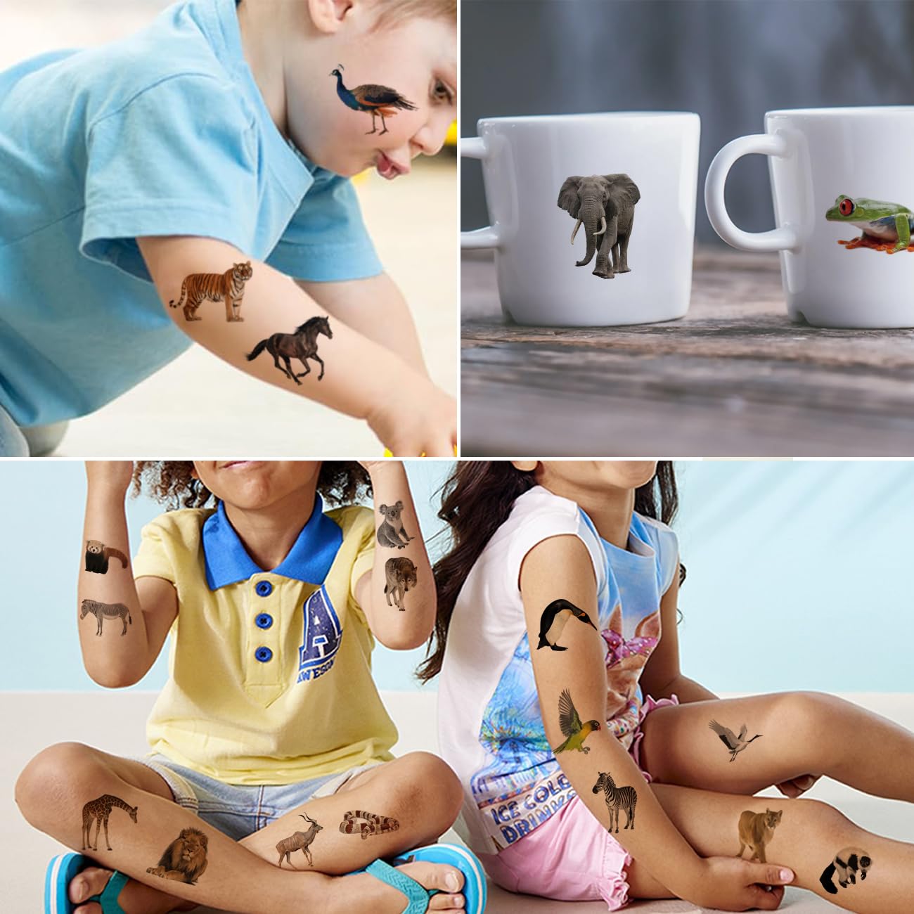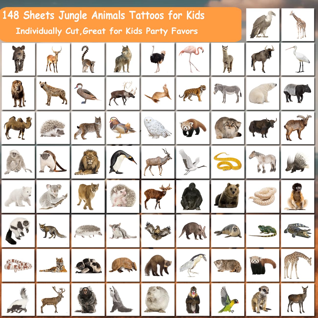 CHARLENT 148 Sheets Jungle Animals Temporary Tattoos for Kids – Individually Cut and Ready to Go!