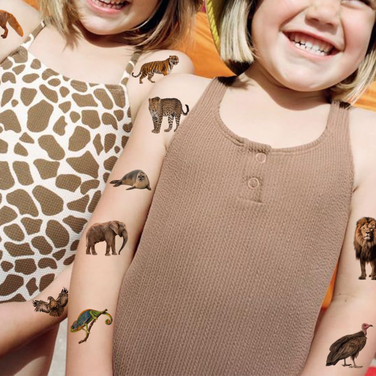 ⚡Kids Jungle Tattoos for All Occasions — These awesome tattoos can be used in various occasions, such as animals birthday party supplies, party decorations, safari animals party favors, party bags, DIY decorations, pool and the beach or gift for kids and rewards. Kids temporary tattoos are the best party favors and goodie bags fillers ever for any kind of celebration!