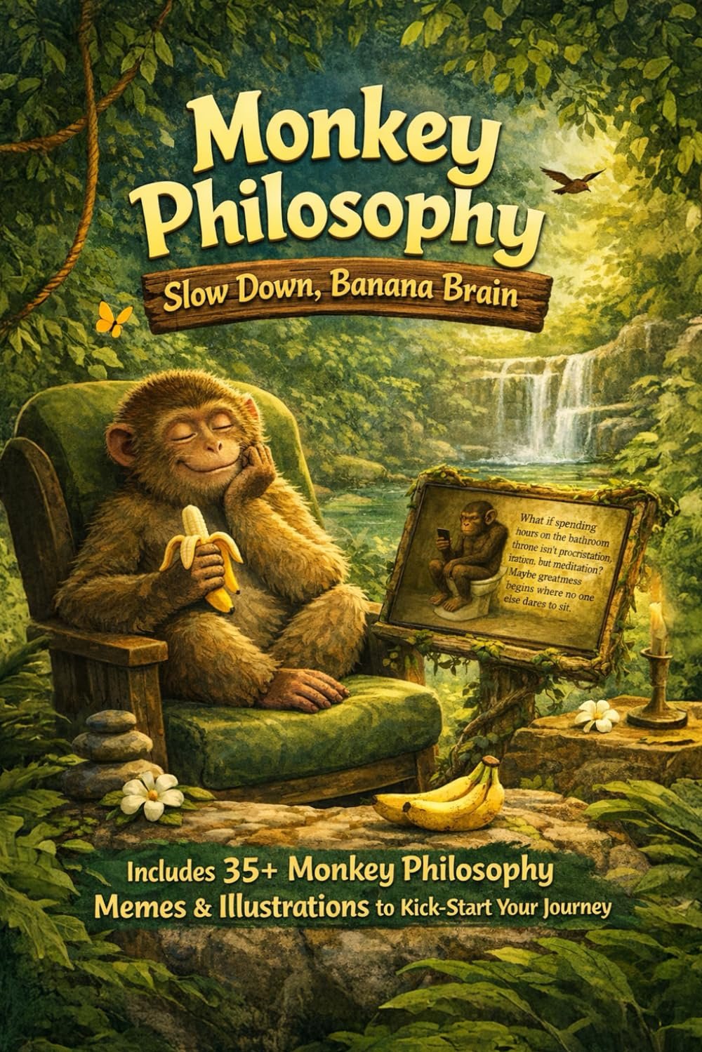 Monkey Philosophy: Slow Down, Banana Brain is a lighthearted mindfulness meme book for overthinkers, burnt-out humans, and anyone who needs a reminder to slow down and breathe. Inspired by the viral Monkey Philosophy meme trend, this book blends humour, reflection, and 35+ original monkey philosophy memes and illustrations that quietly hit deeper than expected.