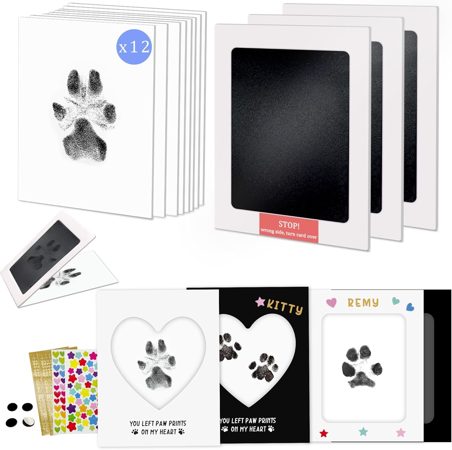 【Easy to Capture Clear Paw Prints】You’ll find capturing your pet’s paw prints is efortless with our inkless ink pads.Just combine the ink pad with the imprint paper and gently press your pet’s paw.Our ink pads capture the details on your pet’s paw prints,even for puppies and kittens(puppy paw print kit,cat paw print kit). All you need to do to get clear paw prints is follow our instructions! If you do it right,you can also use it as a dog nose print kit or paw print tattoos.One ink pad comes with 4 imprint papers to create multiple paw print keepsakes for your beloved pet.
